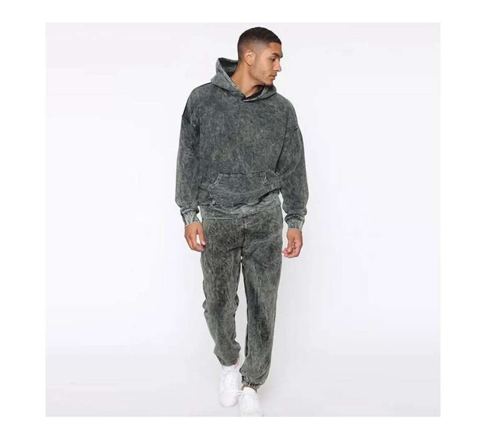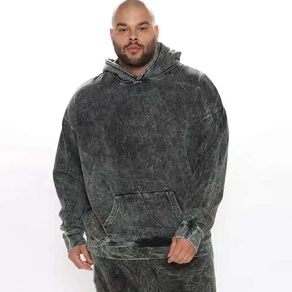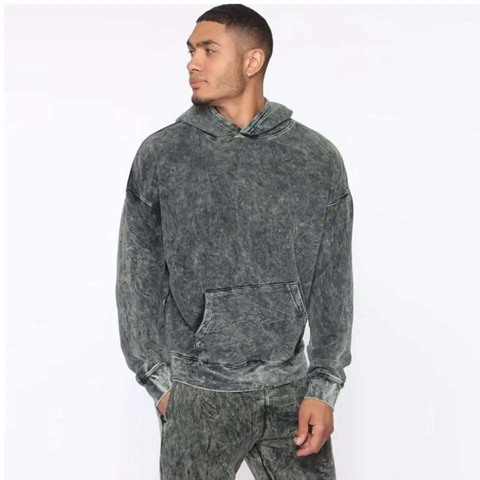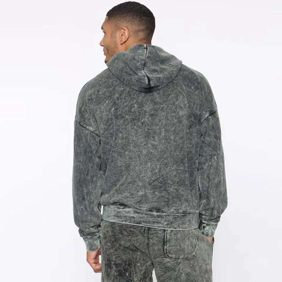 Survêtement surdimensionné vintage délavé à l'acide deux pièces ensemble de pulls ras du cou à manches longues avec survêtement de conception de logo personnalisé pour hommes