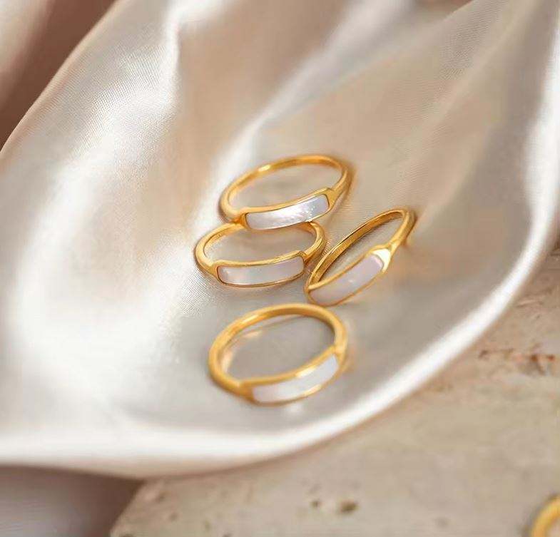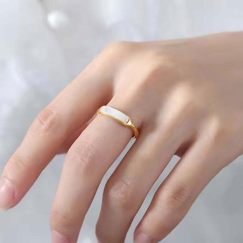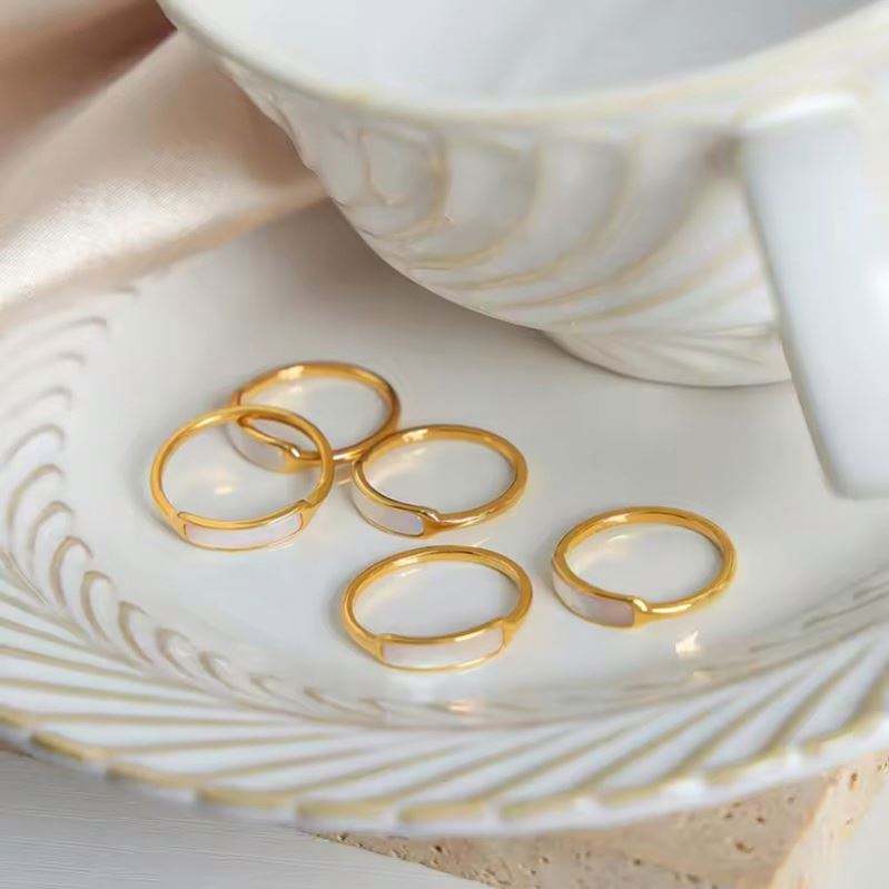 Bague Vintage Perle Blanche Coquillage Simple Déclaration Empilée Titane Acier Inoxydable 18 Plaqué Or Personnalité Anneaux