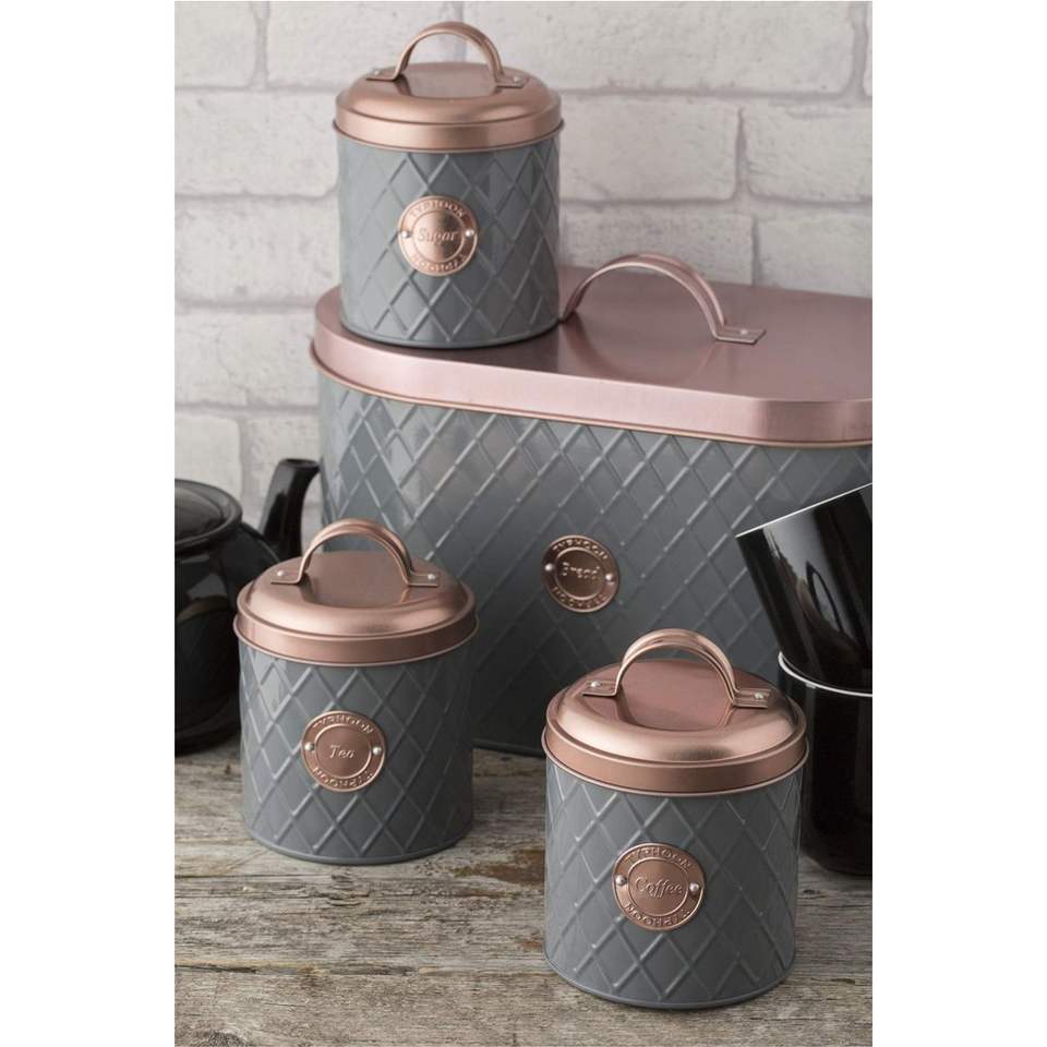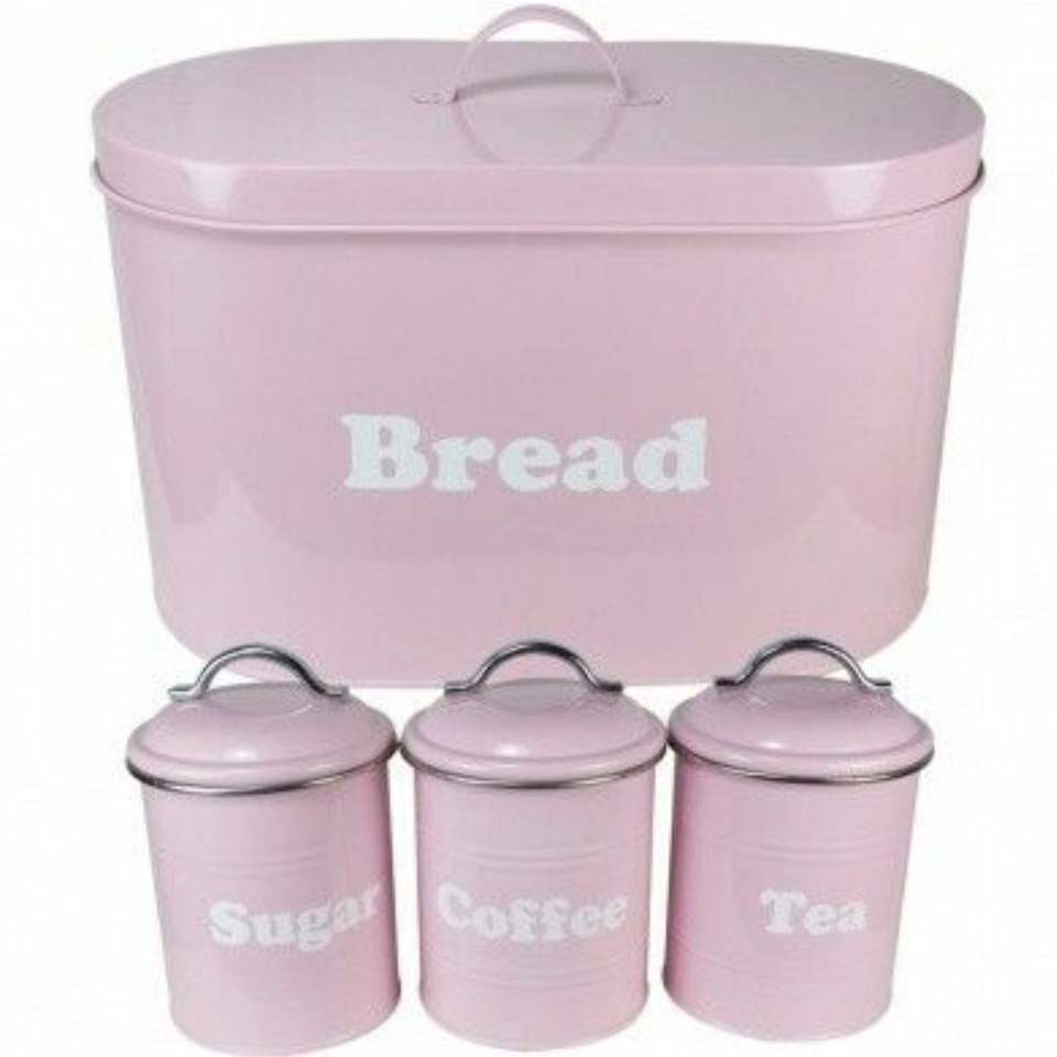 Ensemble de boîtes à pain vintage en métal rose avec 3 pots hermétiques pour thé, café et sucre, conteneurs de rangement alimentaire pour la cuisine et la décoration intérieure
