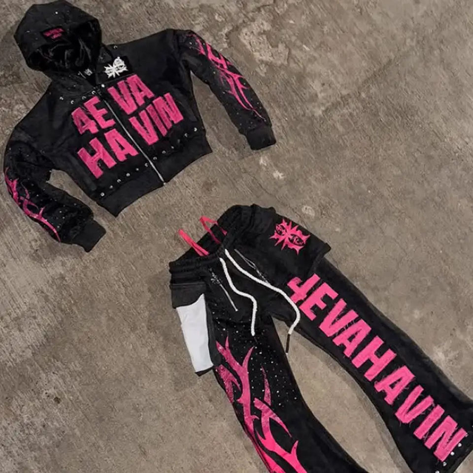 Keywords::Best Product Men Acid Wash Oversized Stone Tracksuits
