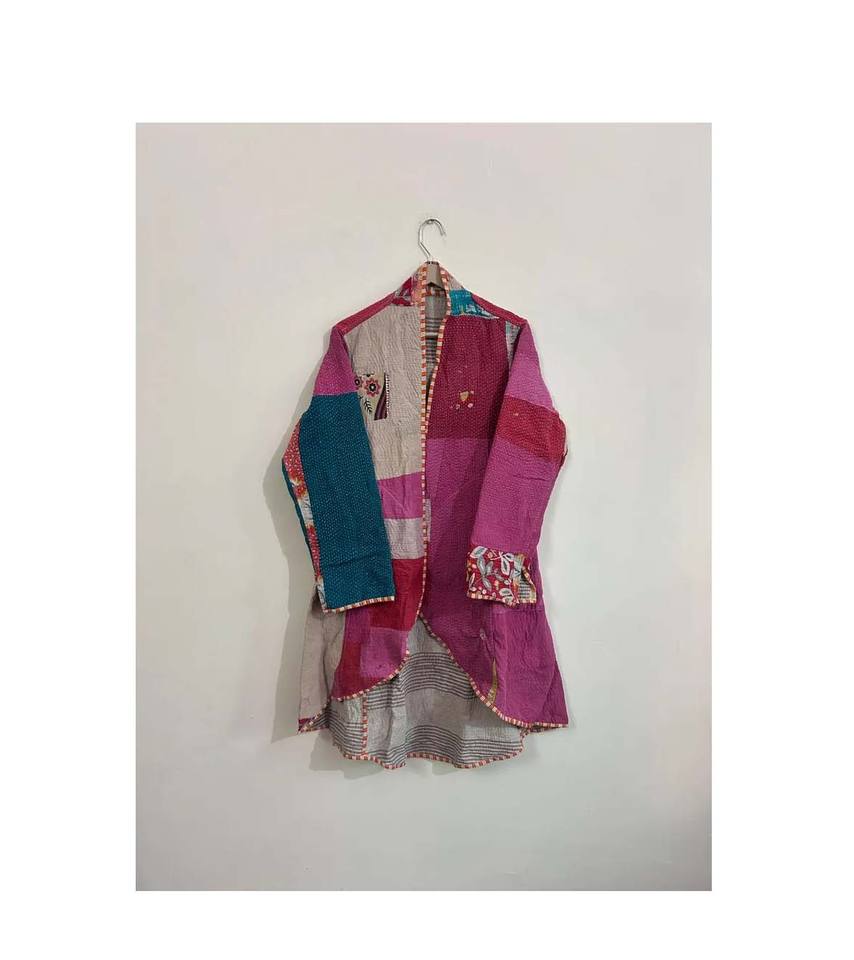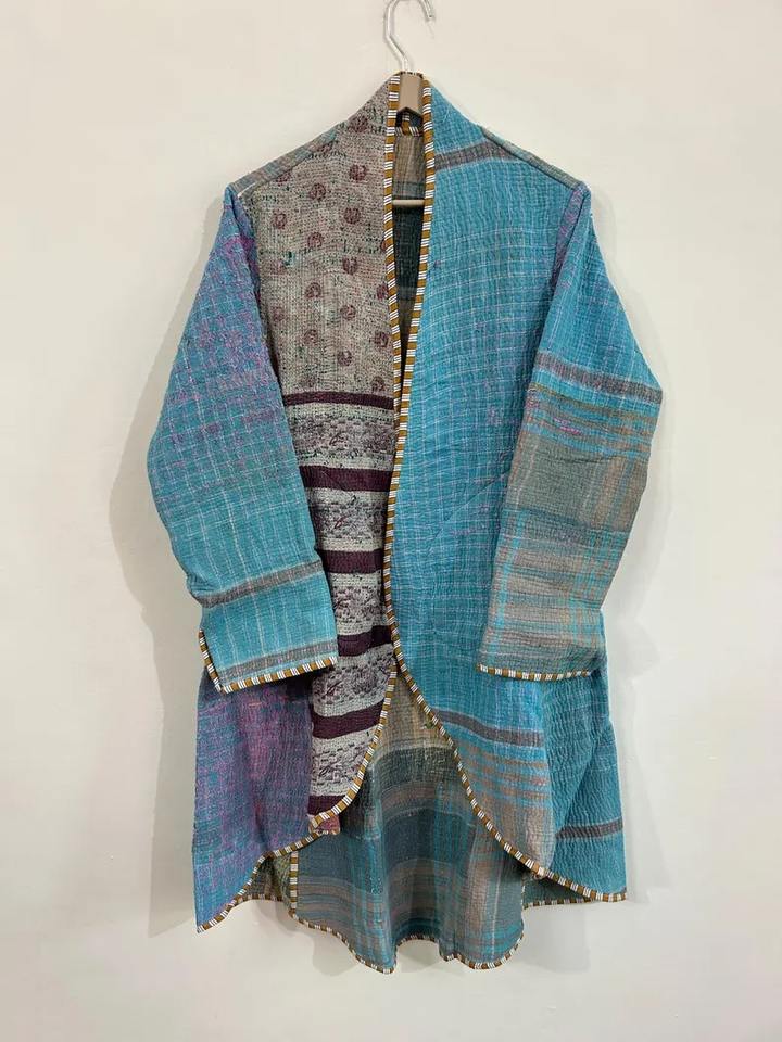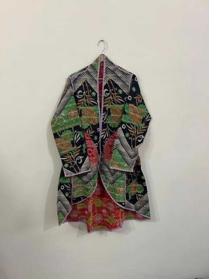 Vintage Quilted Breathable Cotton Kantha Reversible Jacket Coat Indian Style