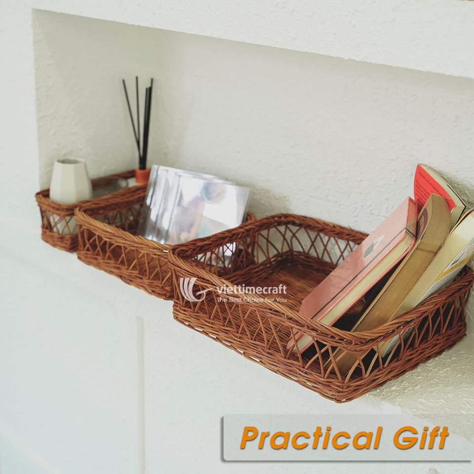 Ensemble de paniers de rangement vintage en rotin écologique, organisateur tressé circulaire, pour garde-manger, salle de bain, rangement polyvalent, cadeau pratique pour la maison