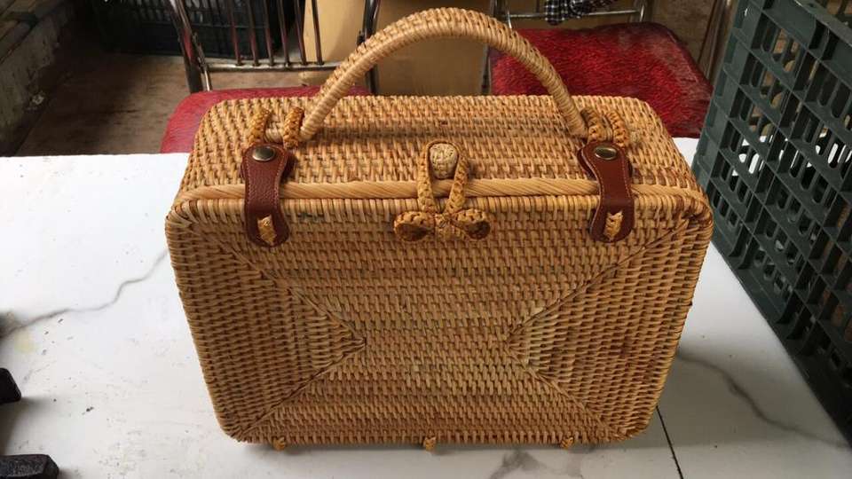 Valise de Camping en rotin Vintage, sac à main en rotin pour pique-nique, sacs de voyage à bagages