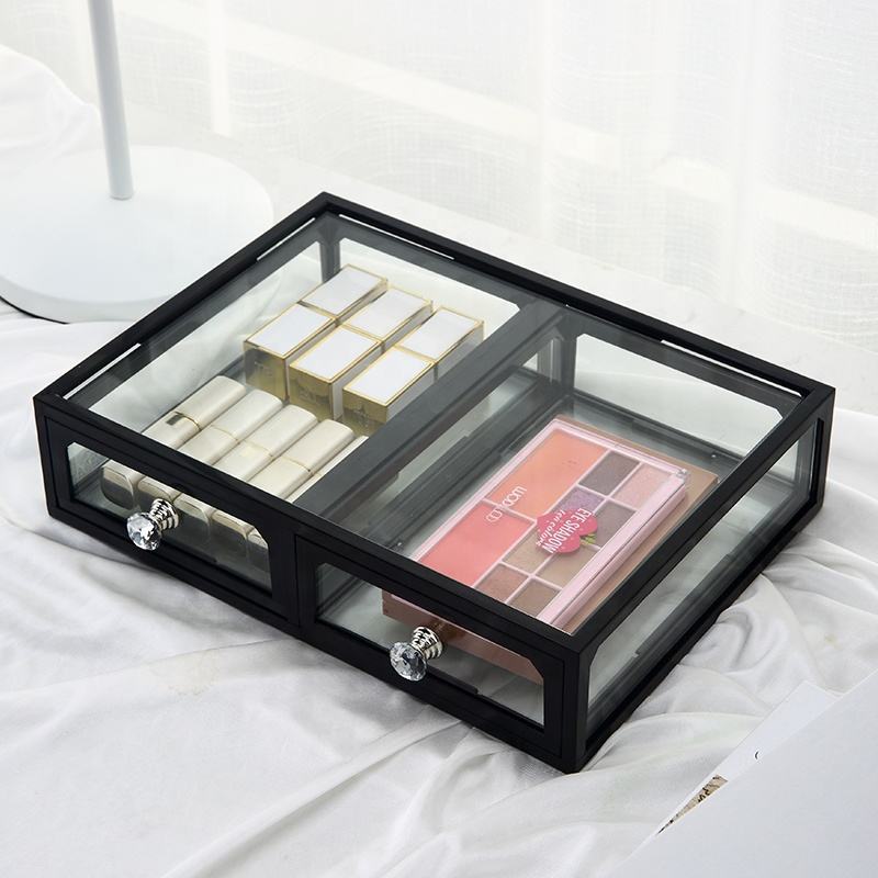 Commode empilable vintage en verre et ABS, design moulé par injection, 2 tiroirs transparents pour pinceaux de maquillage, rouges à lèvres et cosmétiques