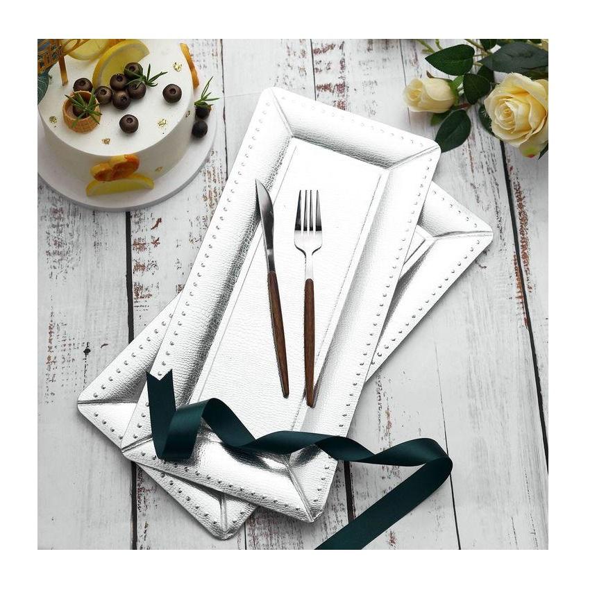 Plateau rectangulaire vintage en acier inoxydable, plateau de présentation pour buffet, plateau de service alimentaire en métal, rangement et organisation à domicile, plat à collation
