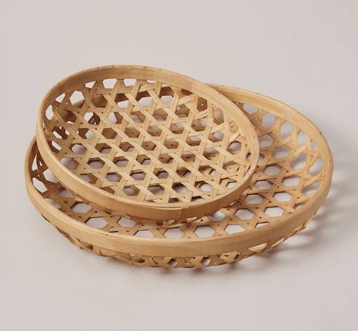 Plateau rectangulaire en bambou vintage tissé panier d'affichage pour fruits légumes collations et produits divers pour le stockage