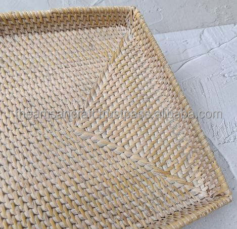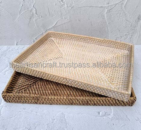 Plateau de Spa Rectangulaire en Rotin Vintage Décoration de Chambre Boho avec Technique Polie Sans Poignée Souvenir Style Amour Artisanat Naturel