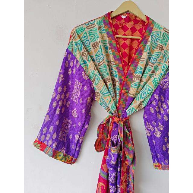 Robe de nuit vintage en soie recyclée Sari Robe Floral-Design chemise de nuit et enveloppe pour l'été et le printemps vêtements de nuit et robe de chambre écologiques