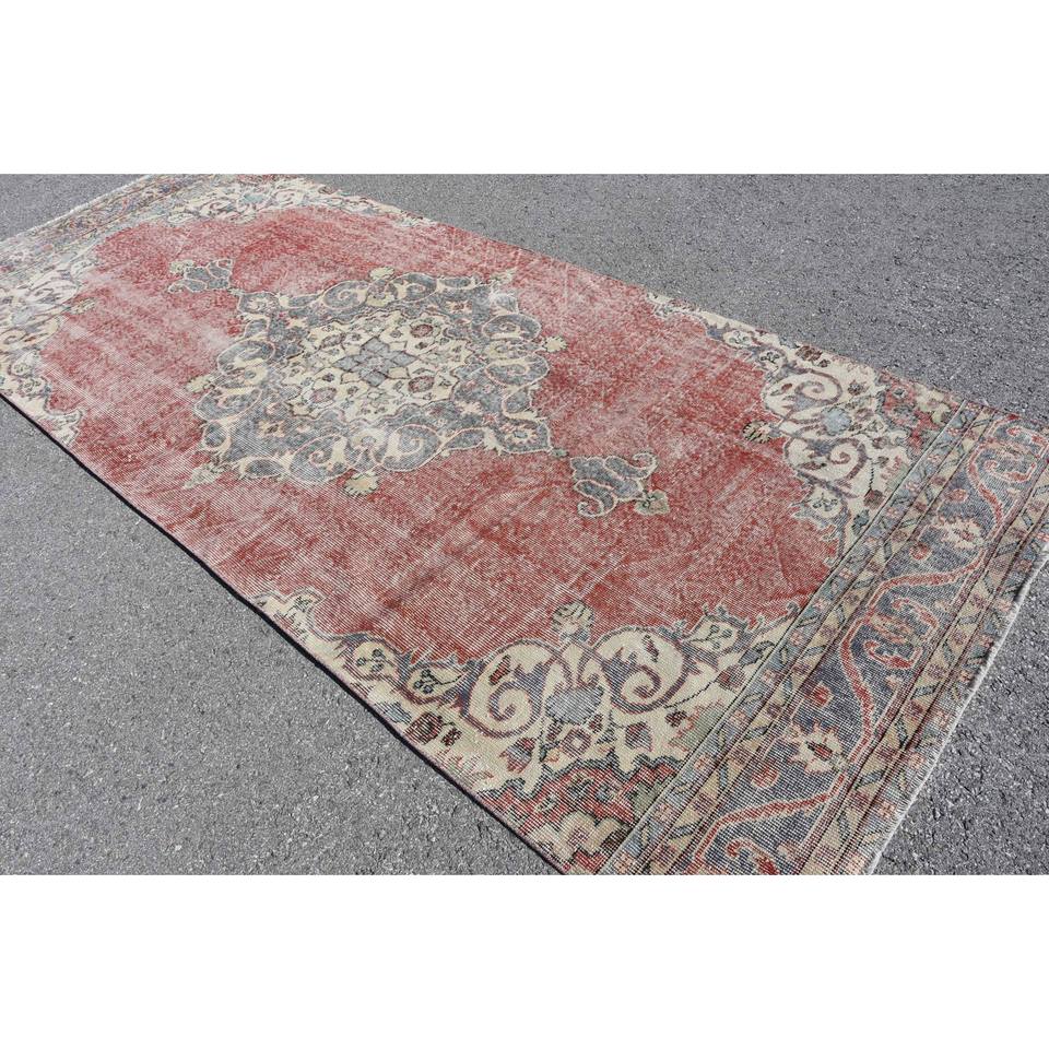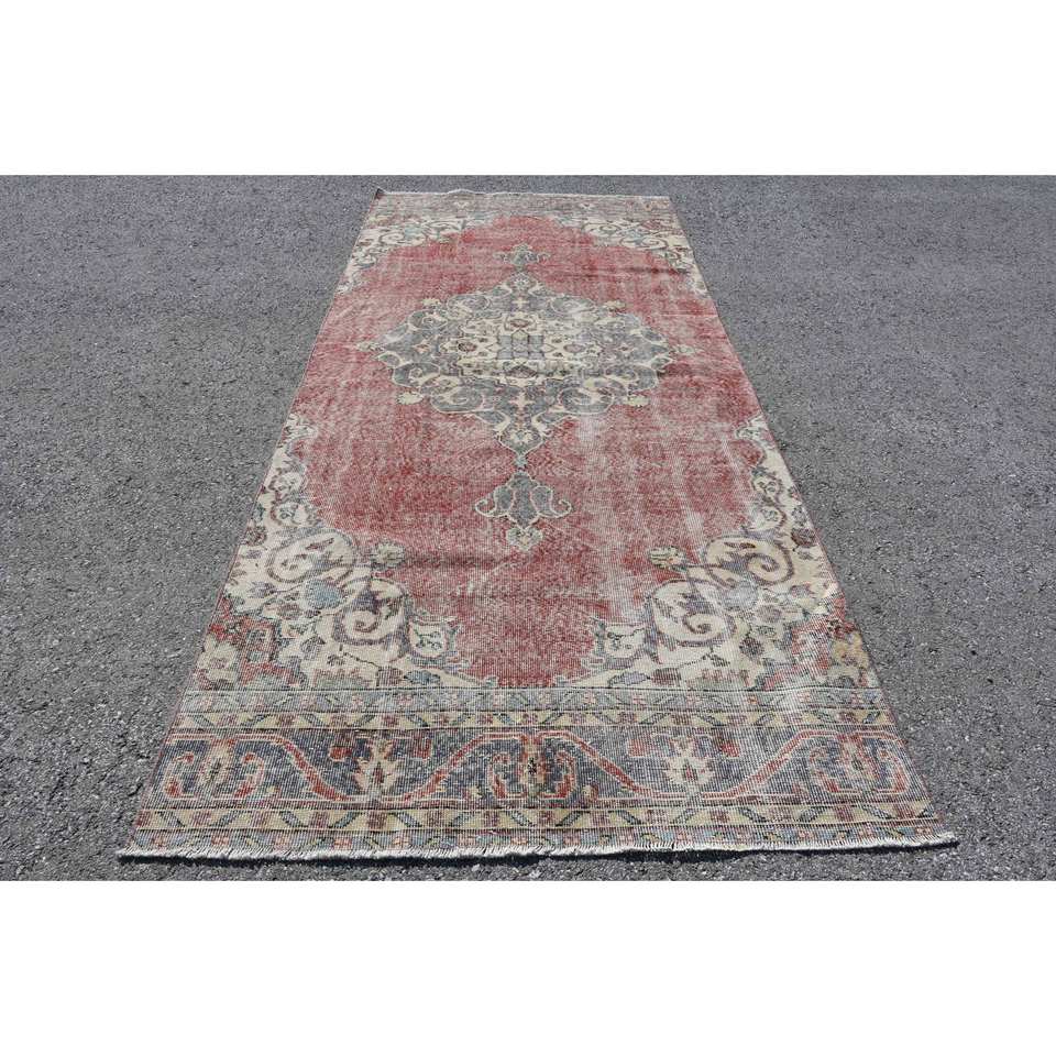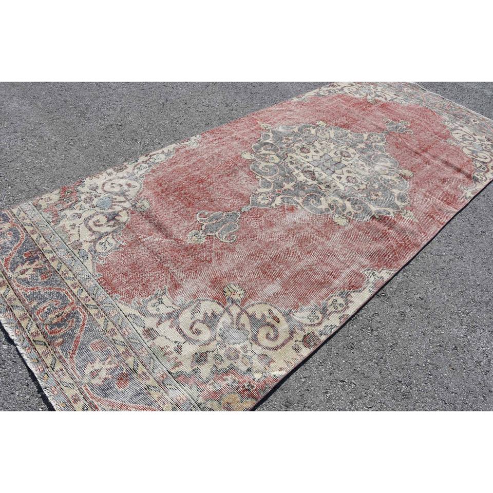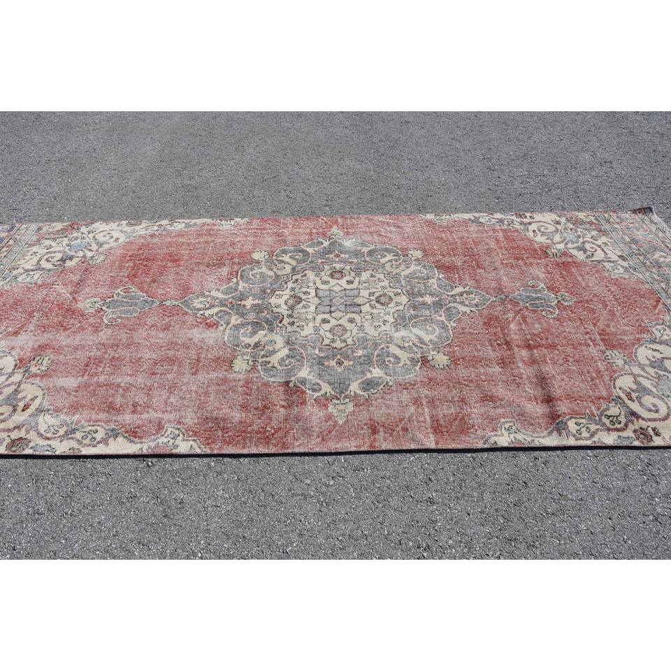 Tapis Vintage Rouge Beige Laine 4.6 X 11.3ft Kilim Turc Grande Surface Abstrait Patchwork Motif pour Couloir Design 10mm Latex Chambres