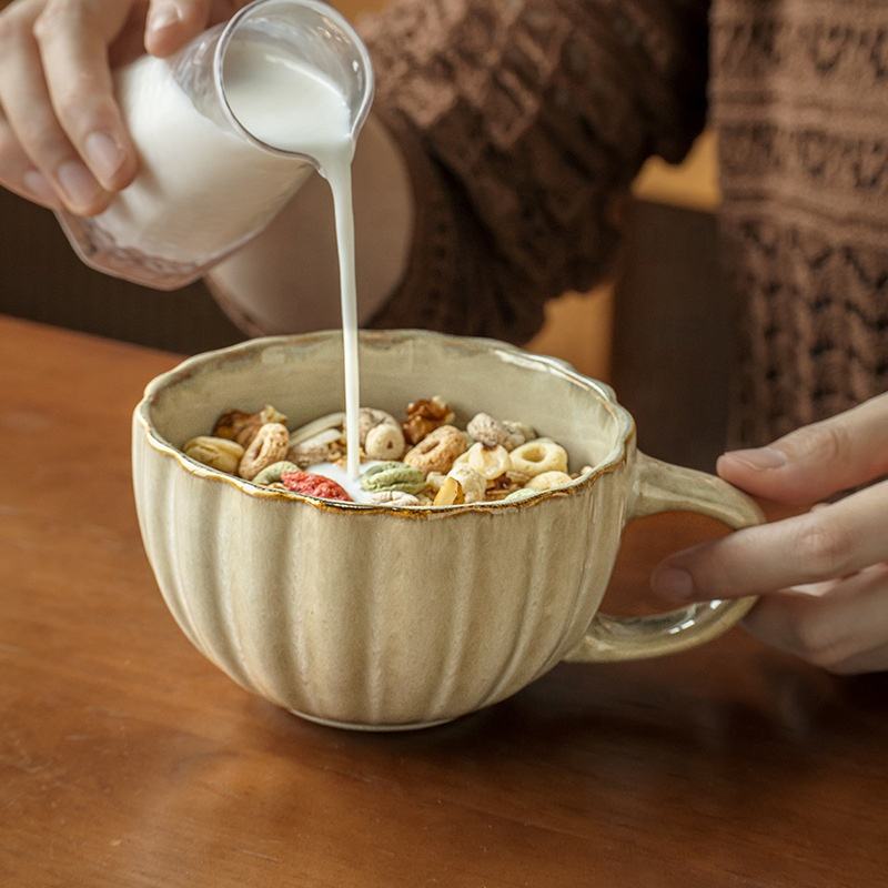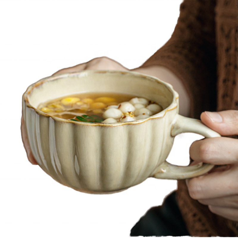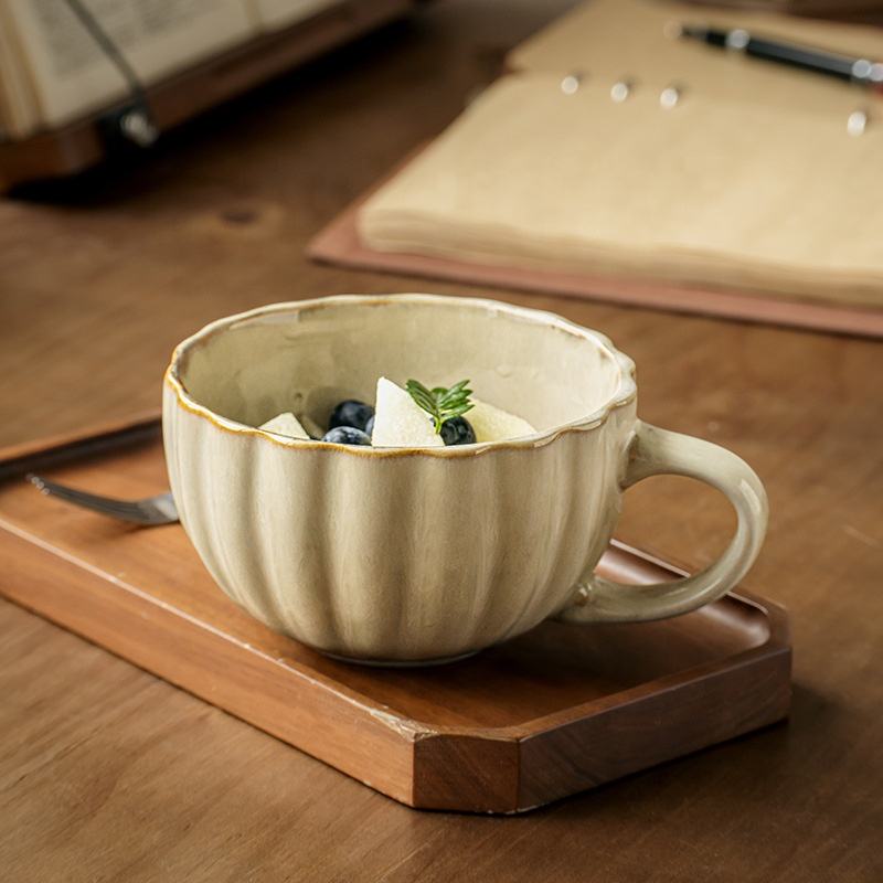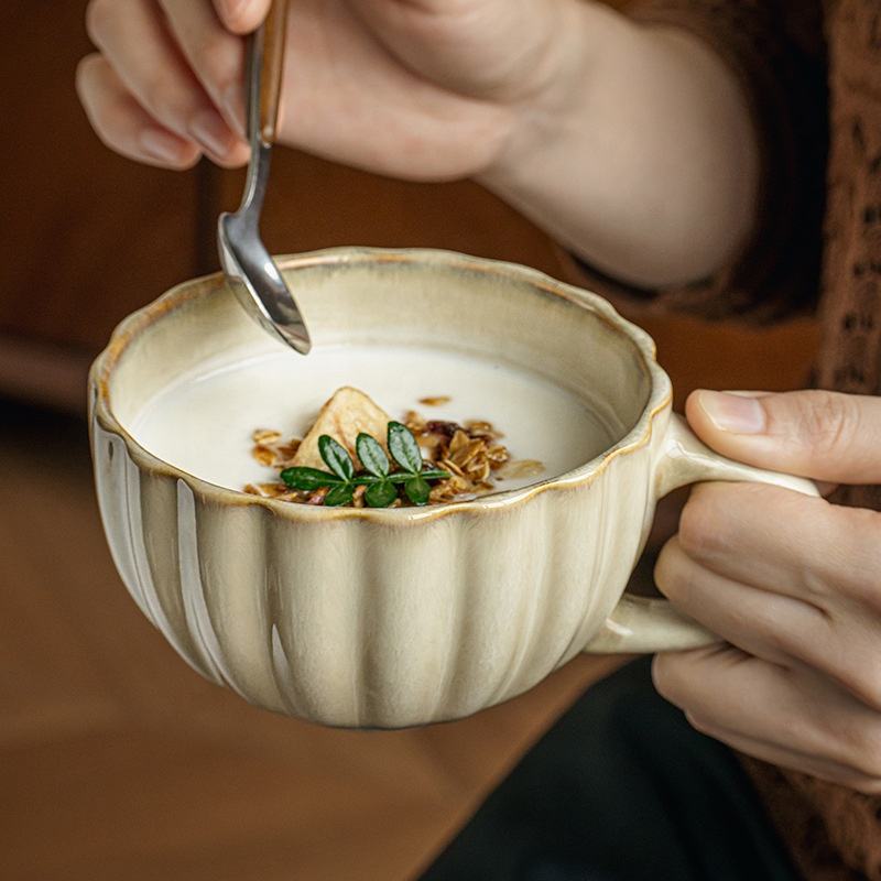 Tasse en céramique à relief vintage pour café et flocons d'avoine Design rétro moderne pour petit-déjeuner et cadeaux d'exportation transfrontalière