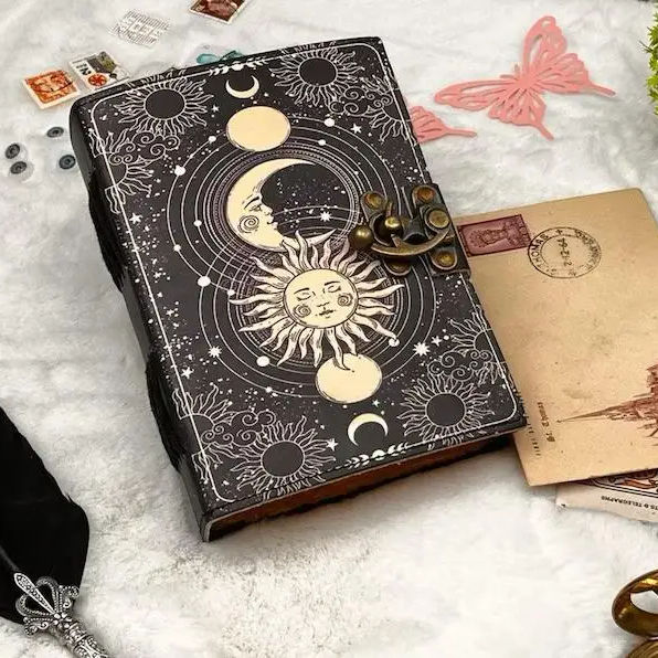Vintage Retro A5 Water Color Sketchbook Sun Moon Embossed Leather Sewn Binding for Magic Prayer Writing Wedding Gust Wellness
