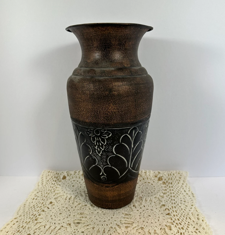 Vase à fleurs marron antique rétro rustique vintage en métal poterie minimaliste nordique décor à la maison Vase à fleurs en métal à patine antique