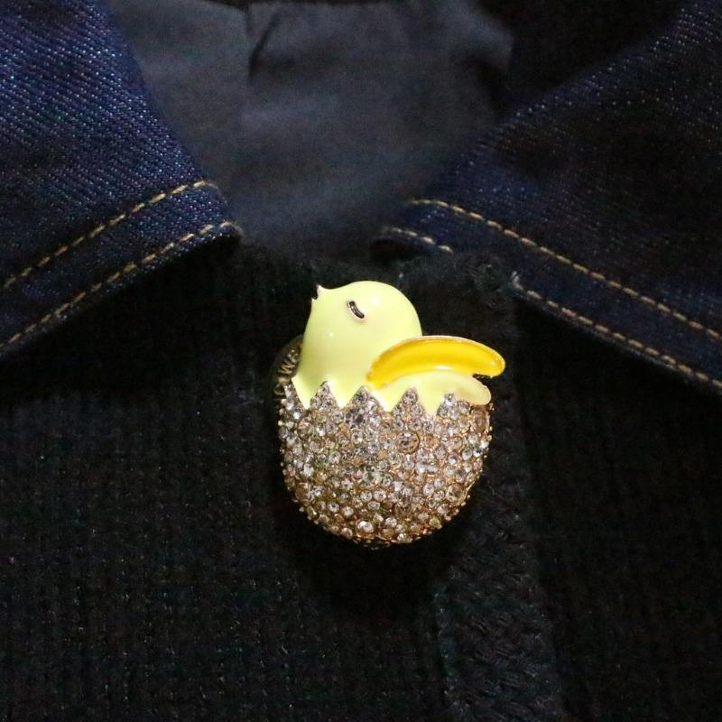 Broche vintage en strass en forme de poulet mignon, épingle de manteau pour femme, accessoire de mode