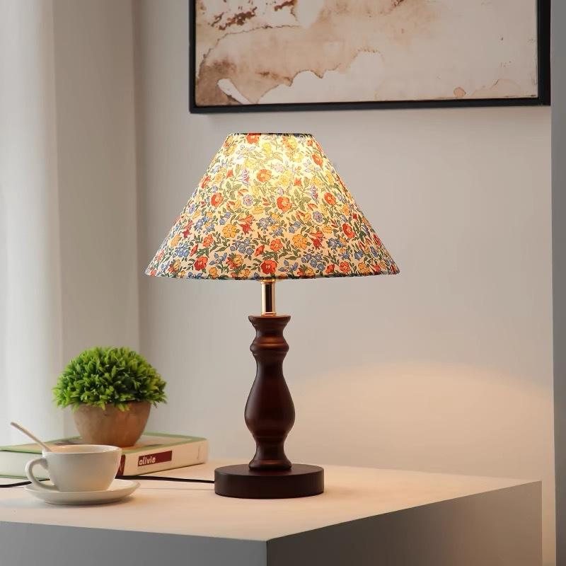 Lampe de table en bois massif vintage romantique à intensité variable, lampe de chevet chaude pour chambre à coucher, salon, style rétro américain pour mariage