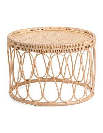 Table basse en rotin rond vintage, bois naturel rustique, style simple et naturel, table basse en bois et en vigne, décoration