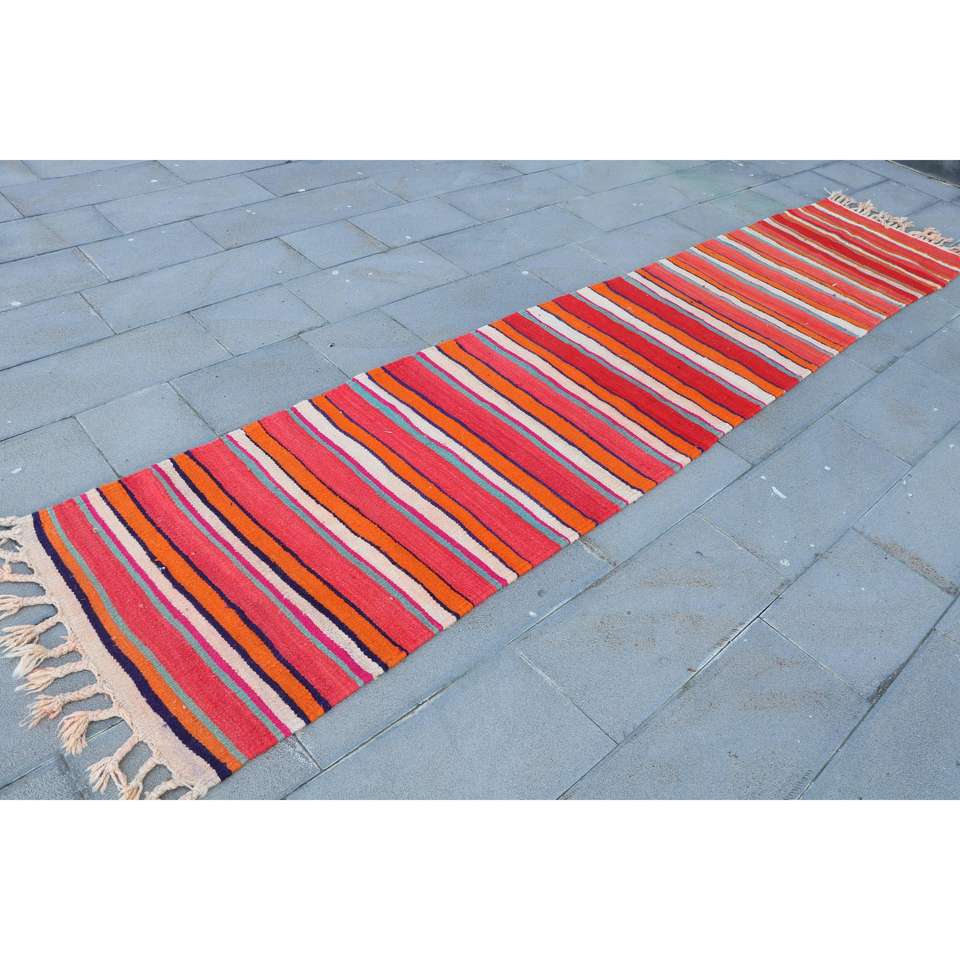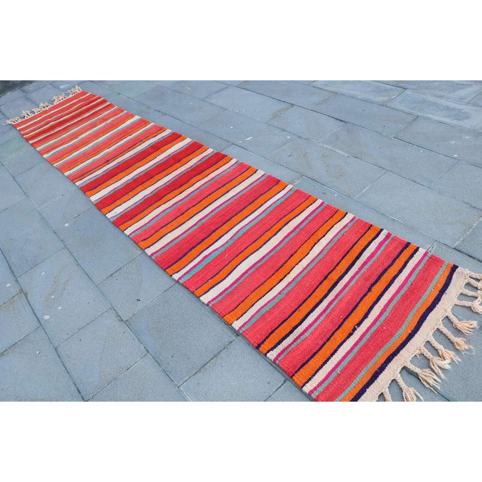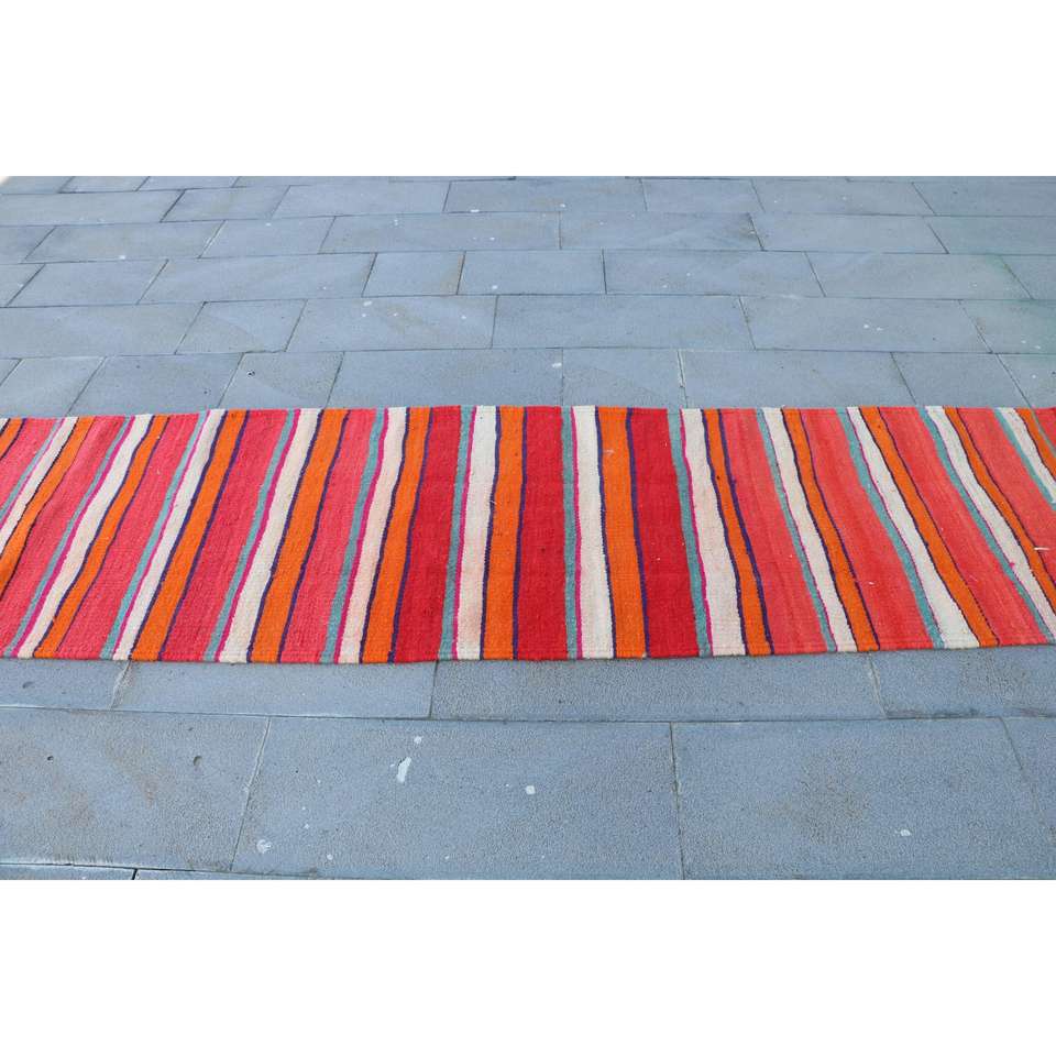 Tapis vintage, tapis de couloir 2,6x12,4 pieds, tapis en laine kilim rouge orangé