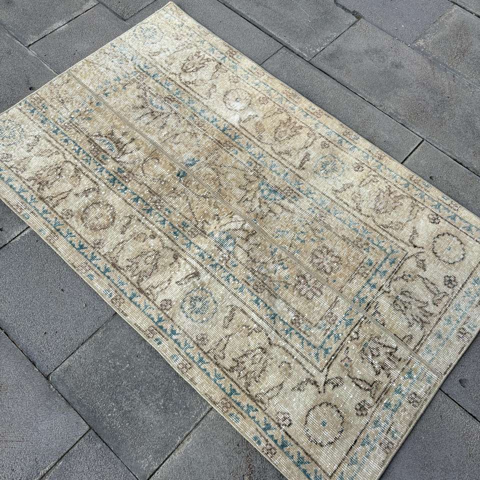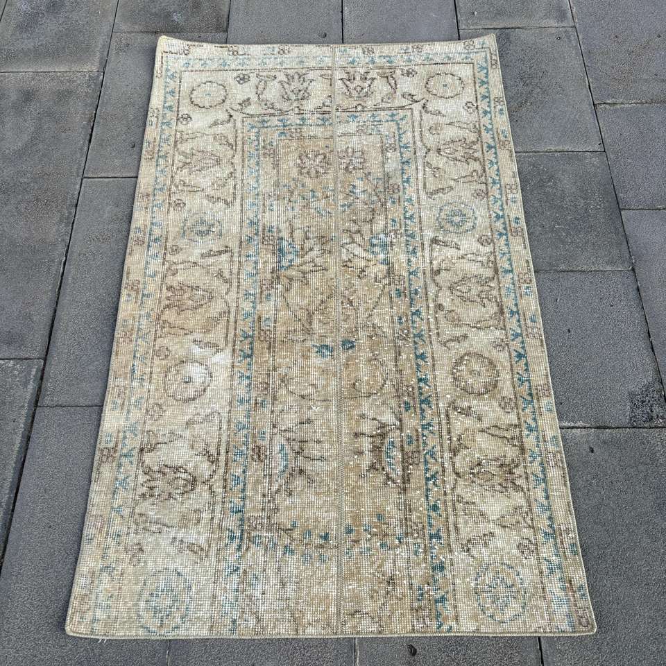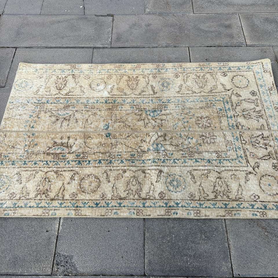 Tapis vintage, tapis turc 2,8x4,5 pieds, tapis oriental en laine marron