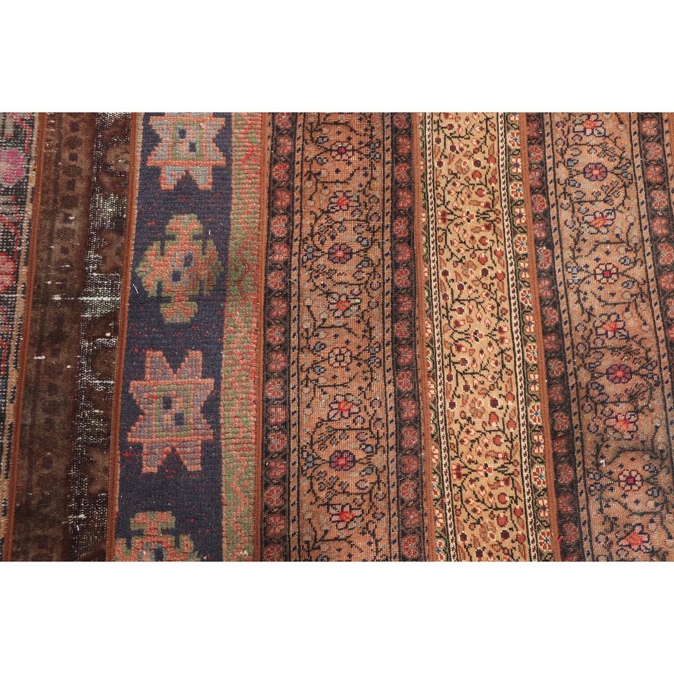 Tapis vintage, petit tapis turc de 2,9 x 13,5 pieds, tapis géométrique patchwork marron arc-en-ciel