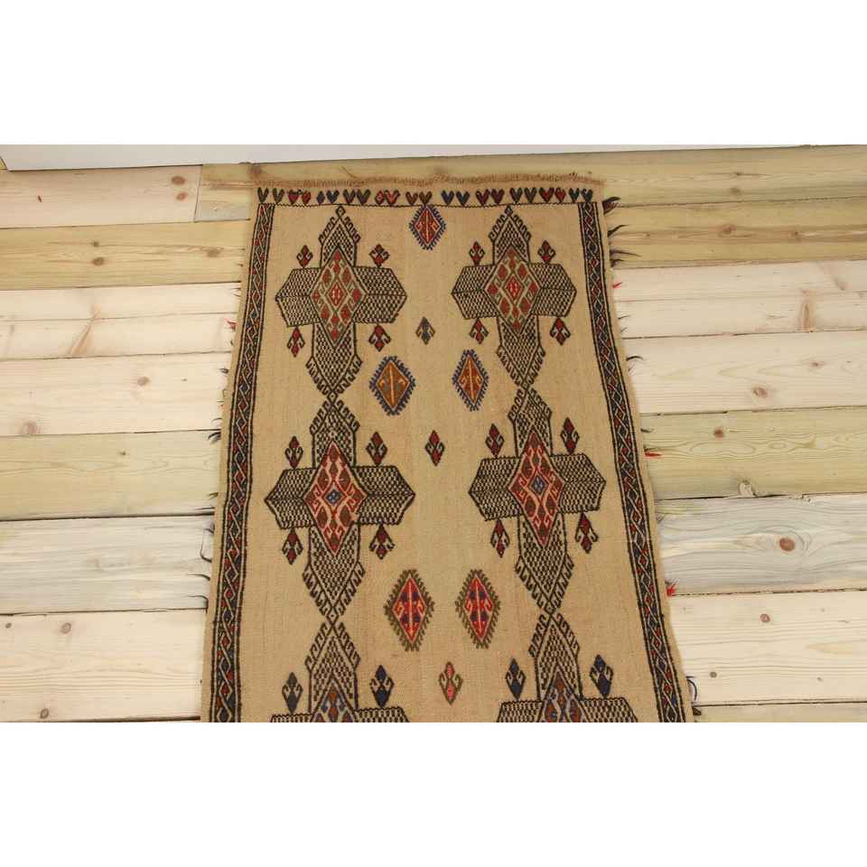 Tapis vintage 2x15,7 pi (62x480 cm), tapis turc à carreaux marron