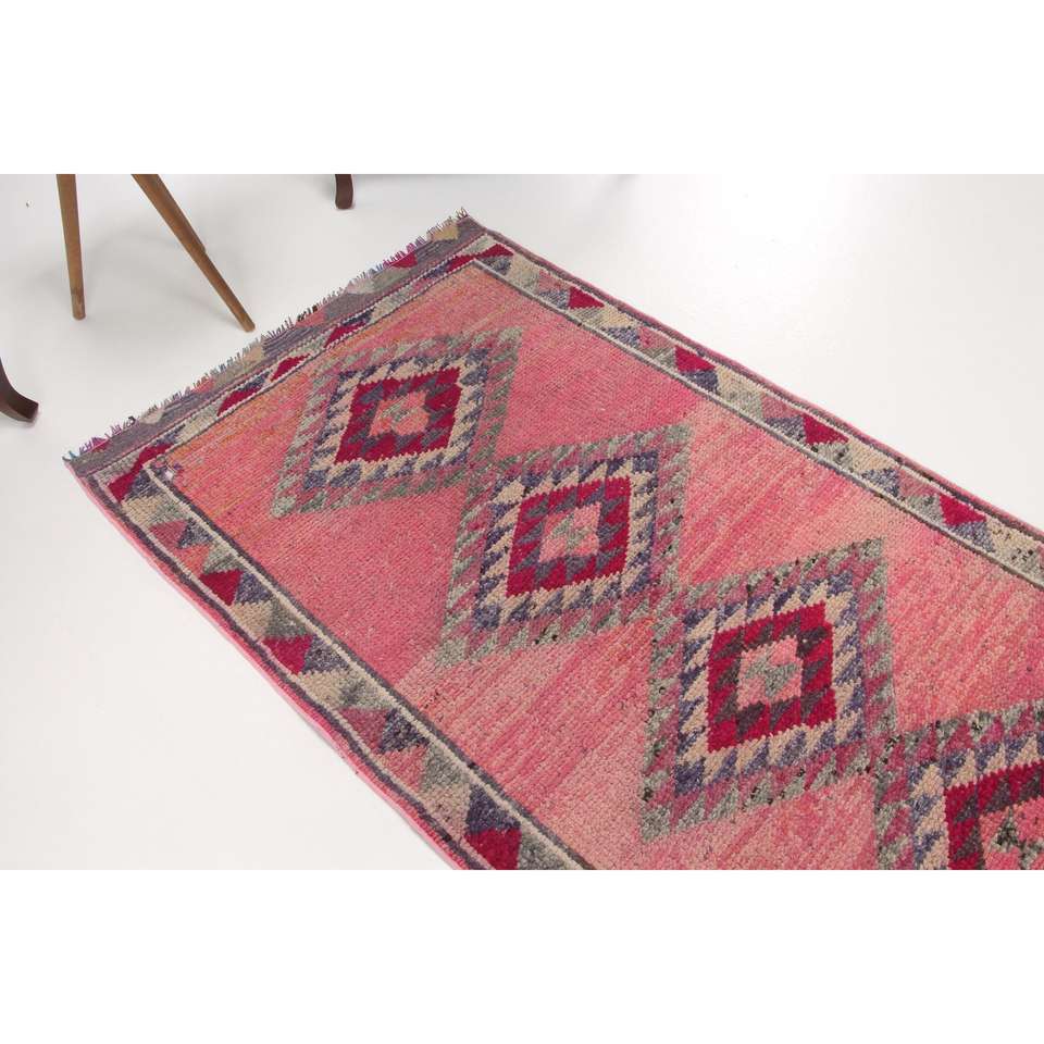 Tapis vintage, tapis turc 3,2x10,9 pieds, tapis en laine rouge rose uni