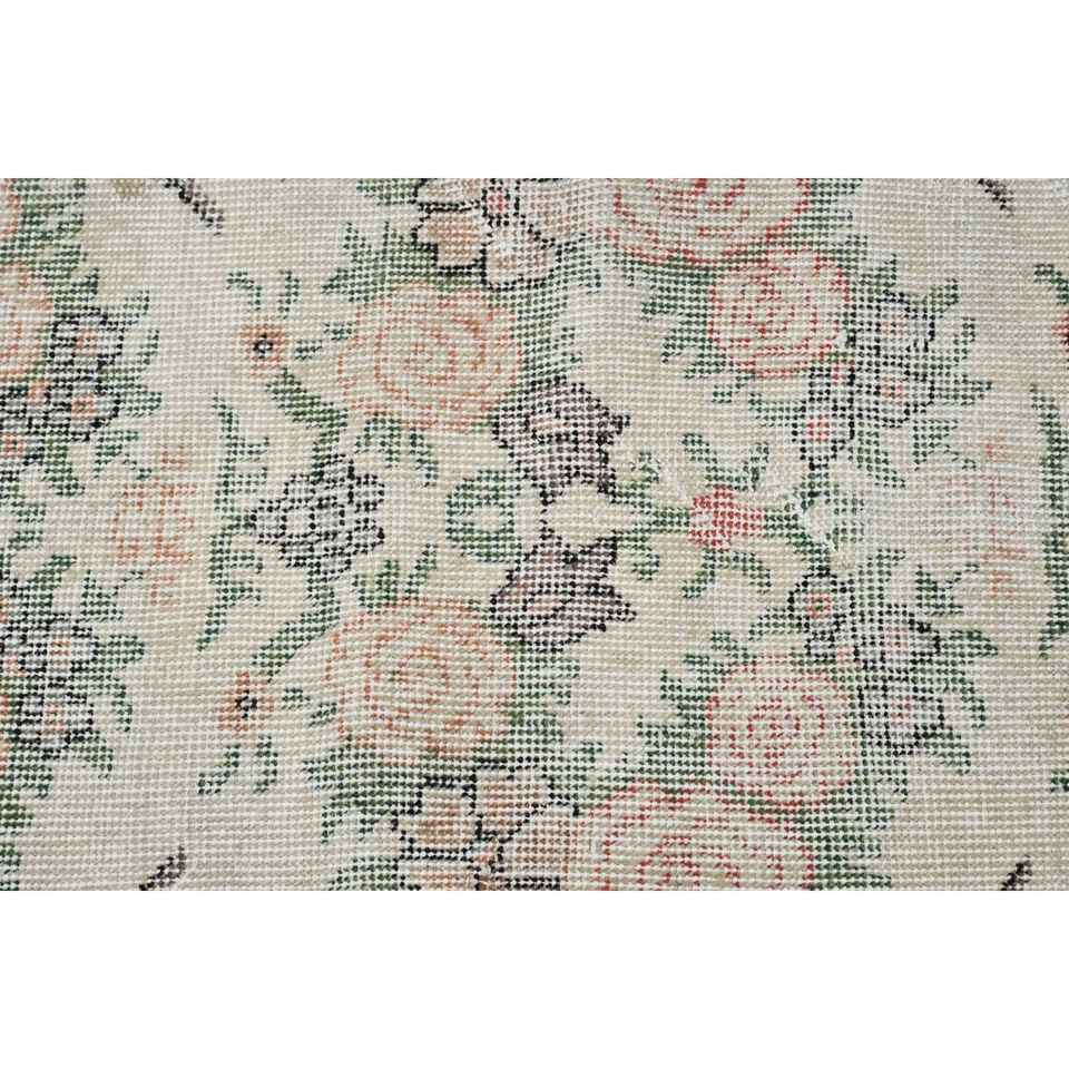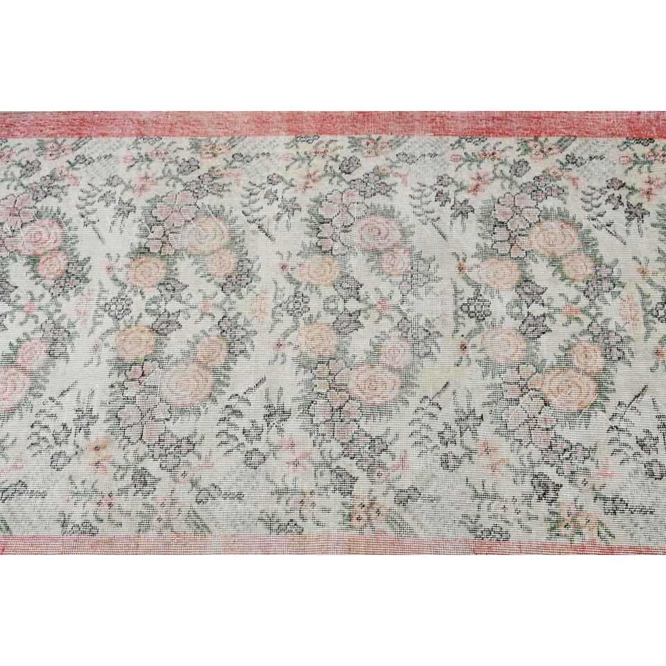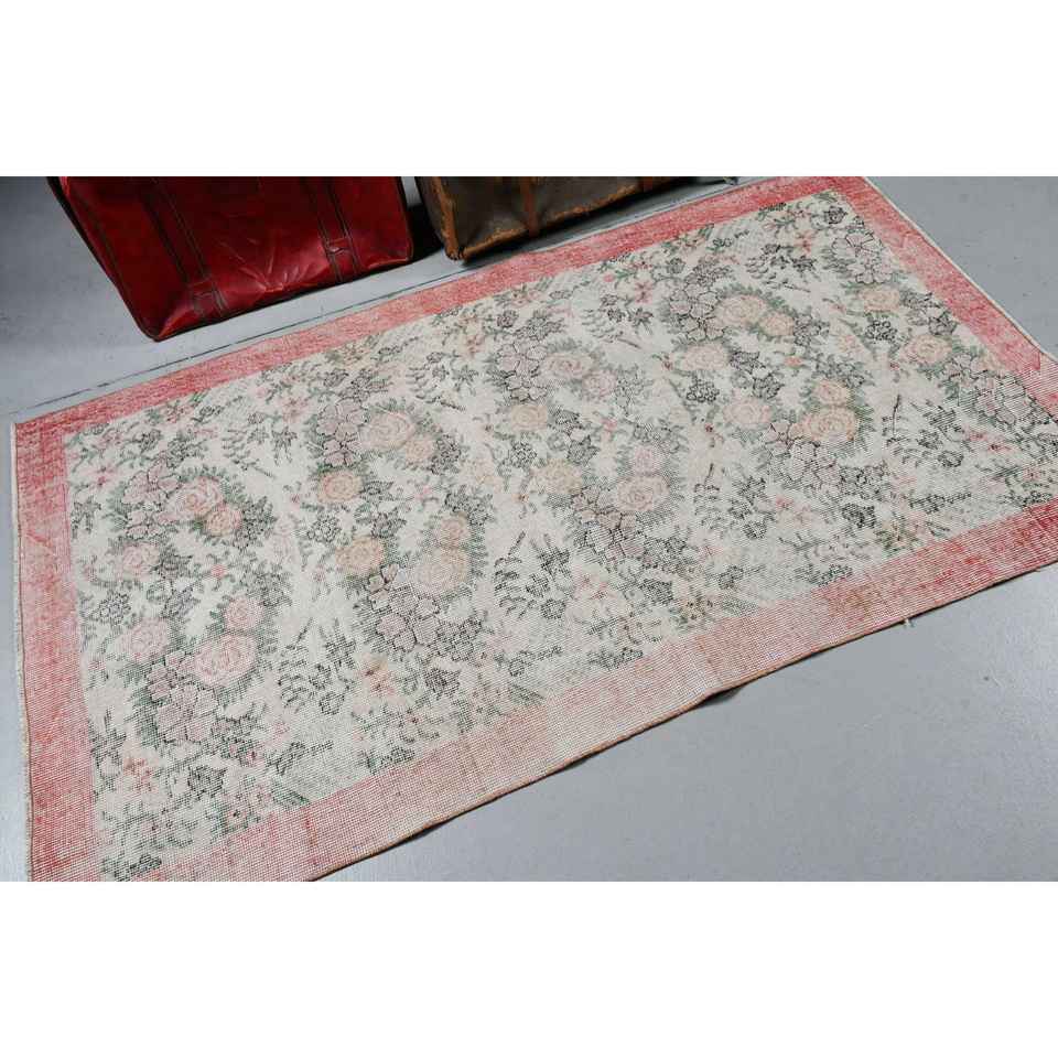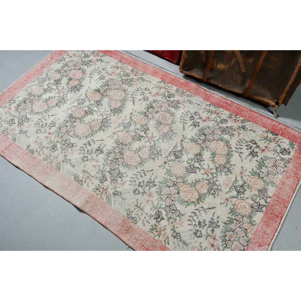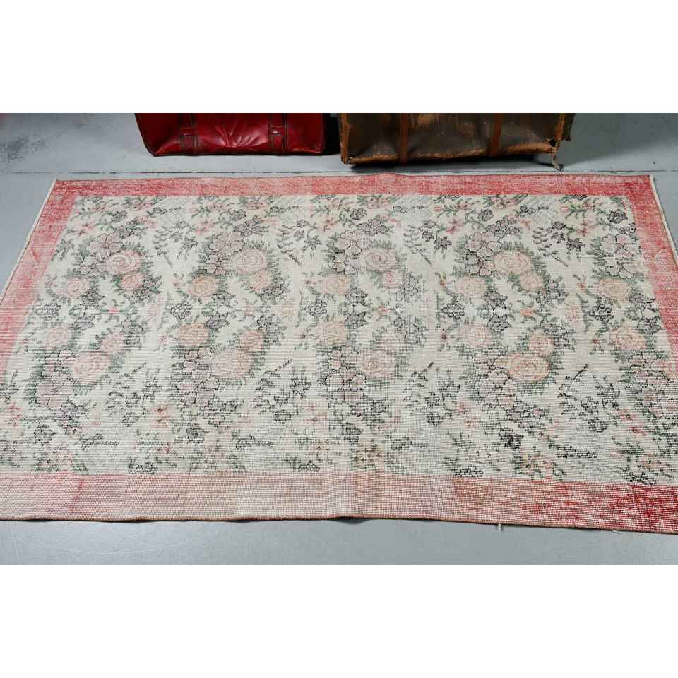 Tapis vintage 3,8x6,4 pieds, tapis turc en laine abstrait rouge et vert