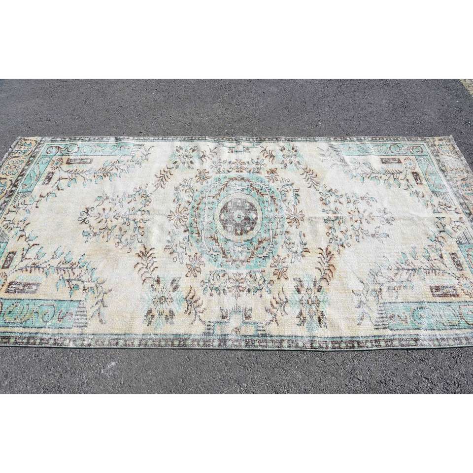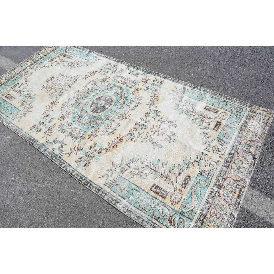 Tapis vintage, grand tapis turc de 4,4 x 9,2 pieds, tapis beige bleu à motifs floraux