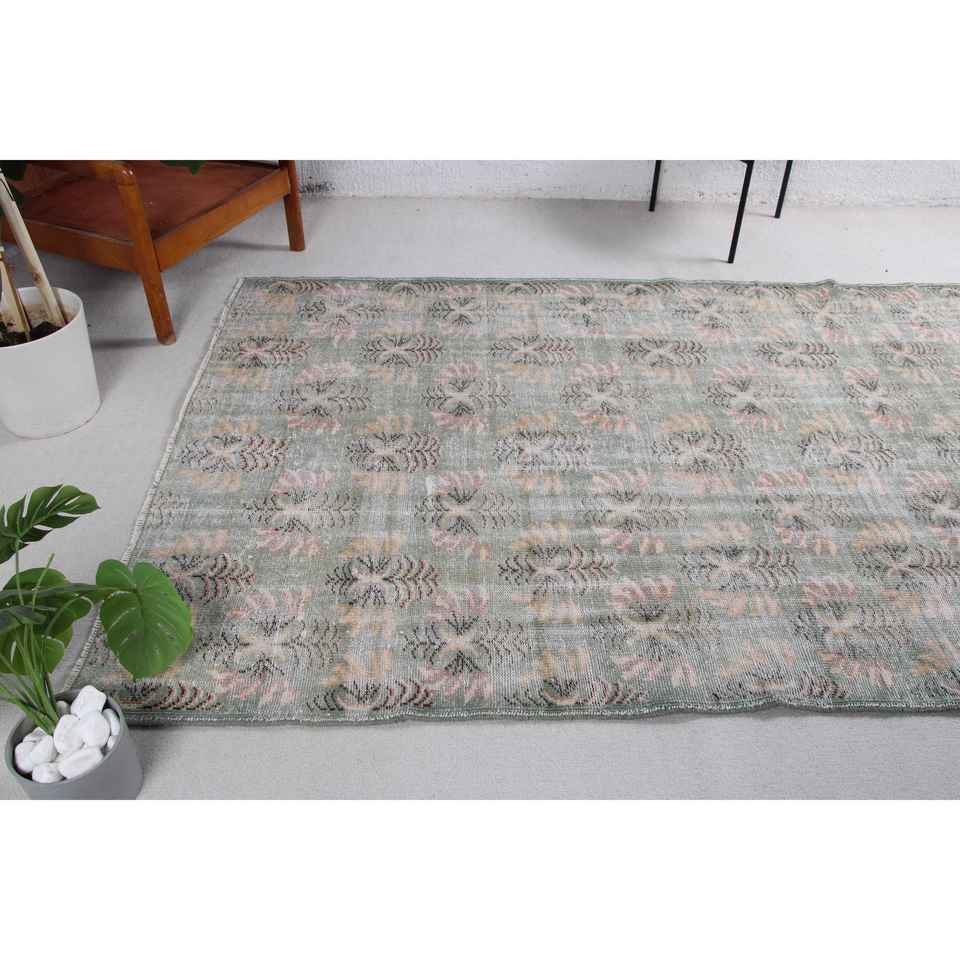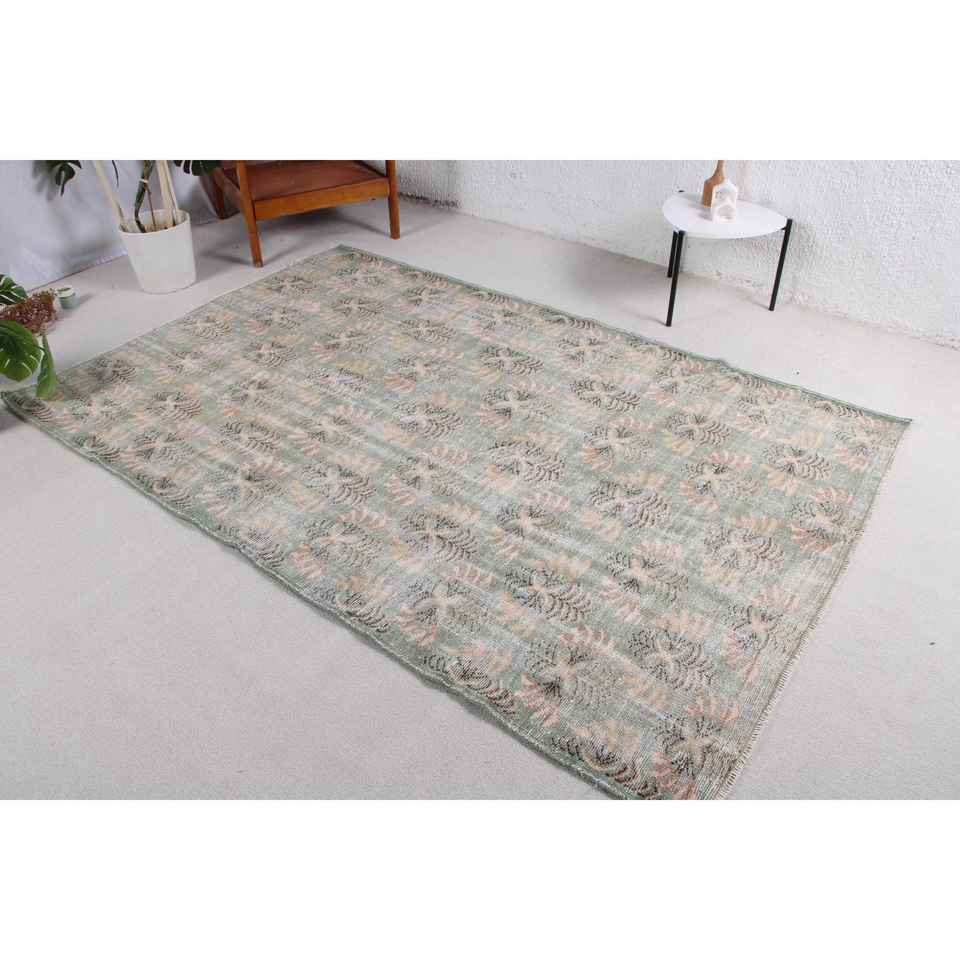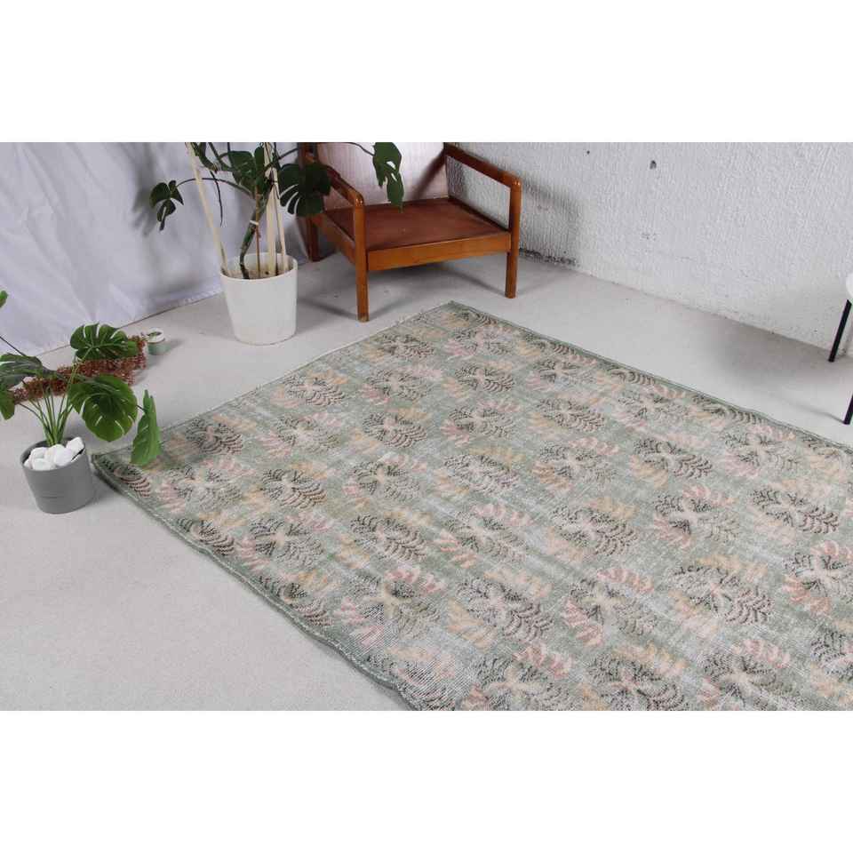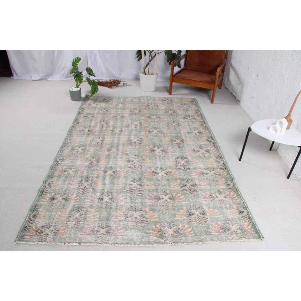 Tapis vintage, grand tapis de 5,2 x 8 pieds, tapis turc en laine à carreaux verts