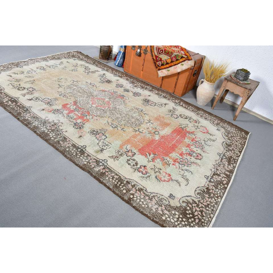 Tapis vintage, tapis turc 5,8x10 pieds, tapis en laine à carreaux marron rouge