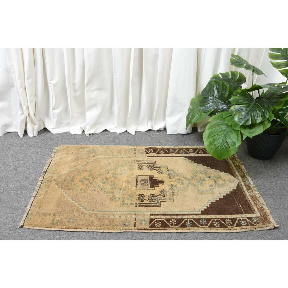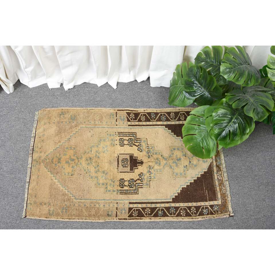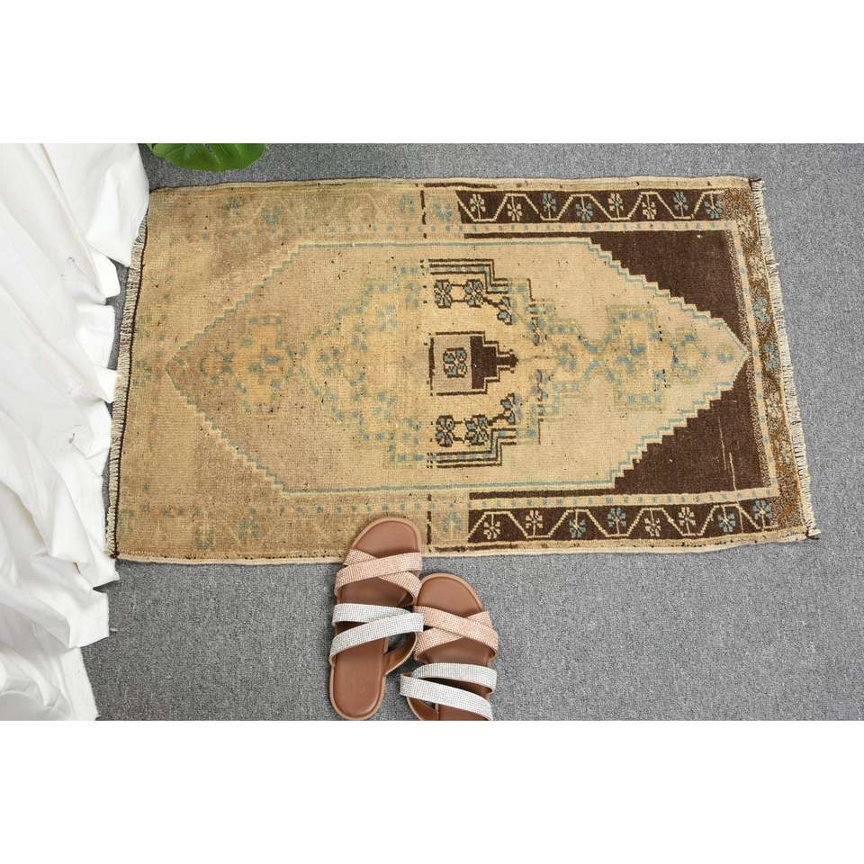 Tapis vintage, petit tapis de 1,7 x 2,8 pieds, tapis persan brun