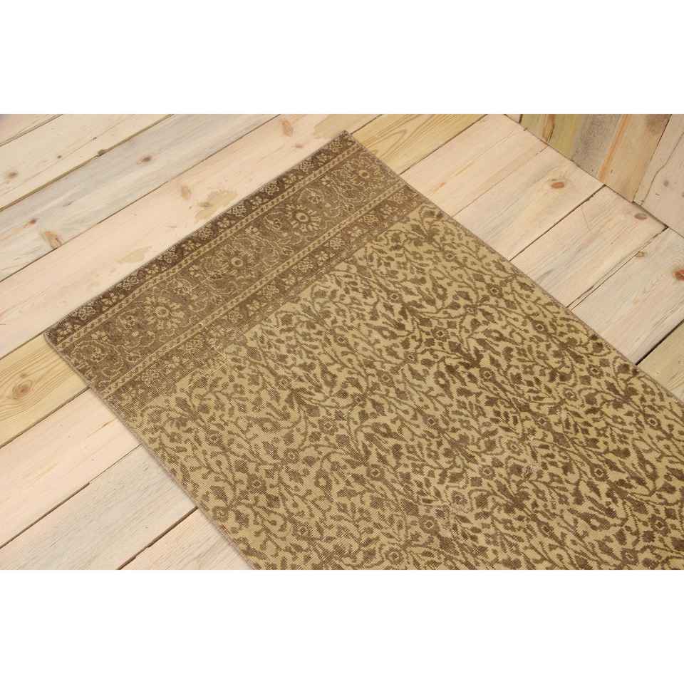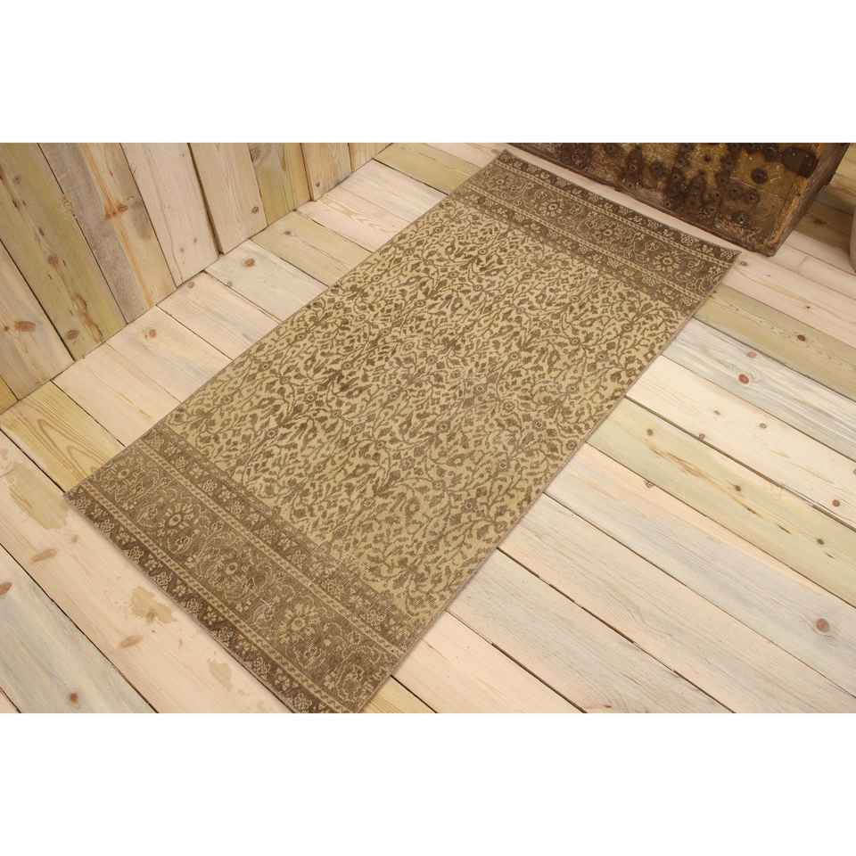 Tapis vintage, petit tapis turc 2,2x4,5 pieds, tapis en laine marron à motifs de plantes et d'arbres