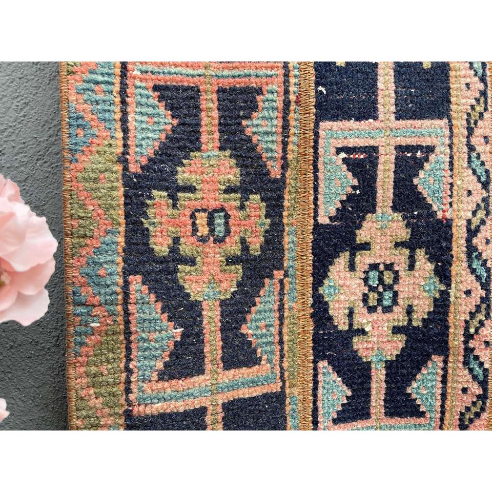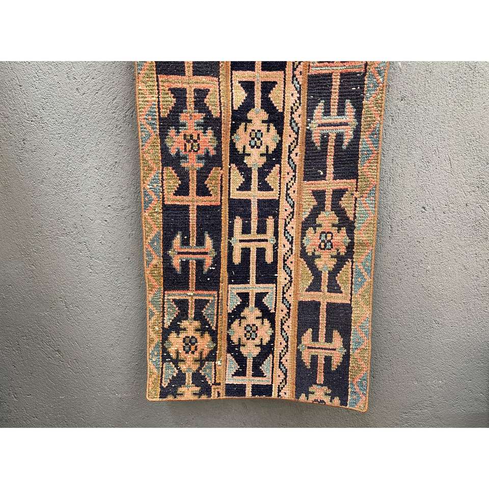 Tapis de couloir vintage 1,8x5,2 pi (55x157 cm), tapis turc noir à pois