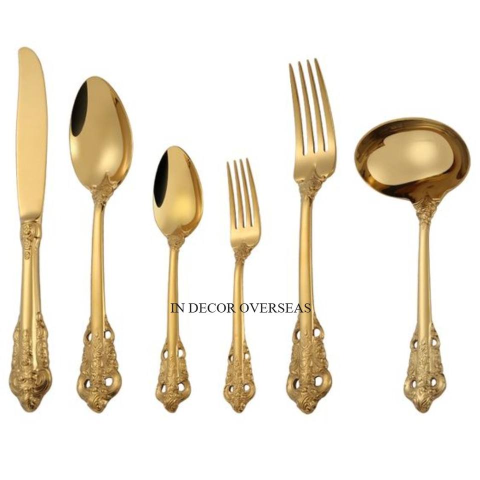 Couverts en métal de qualité supérieure en plaqué or de haute qualité, ensembles de couverts à prix compétitif, design d'art rustique vintage