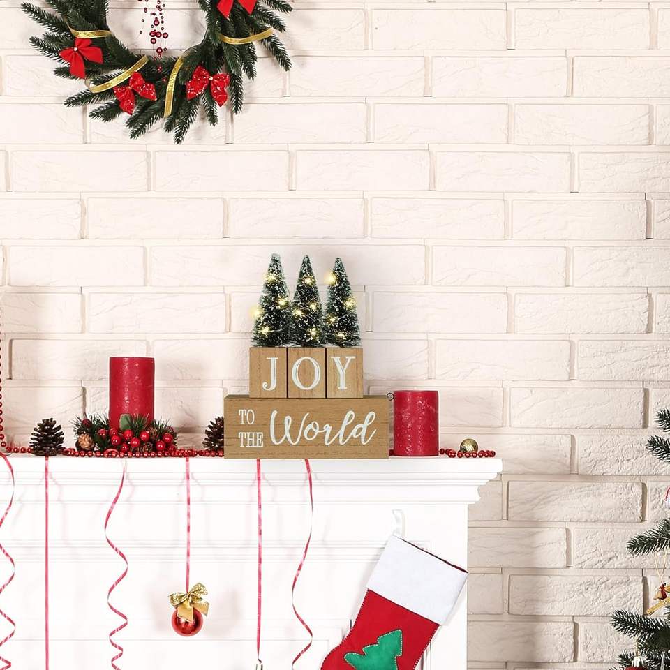 Panneaux muraux en bois rustiques vintage avec éclairage LED « JOY to the WORLD » pour décorations d'arbre de Noël à la maison, style ferme hivernal