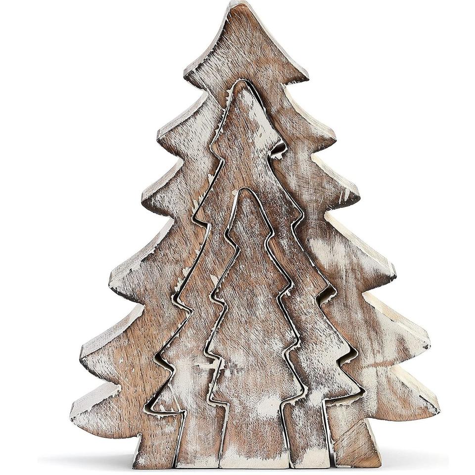 Arbre de Noël en bois rustique vintage avec découpes, corps en bois complet, tailles 14.5x9.5 cm, décorations de Noël