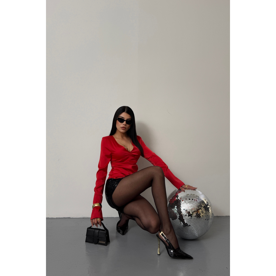 Vintage Satin Wrap Blouse Cuff Sleeves Red Plaid Pattern Ruffled Collar XS-XL Sizes Casual Fashion for Spring Autumn Seasons