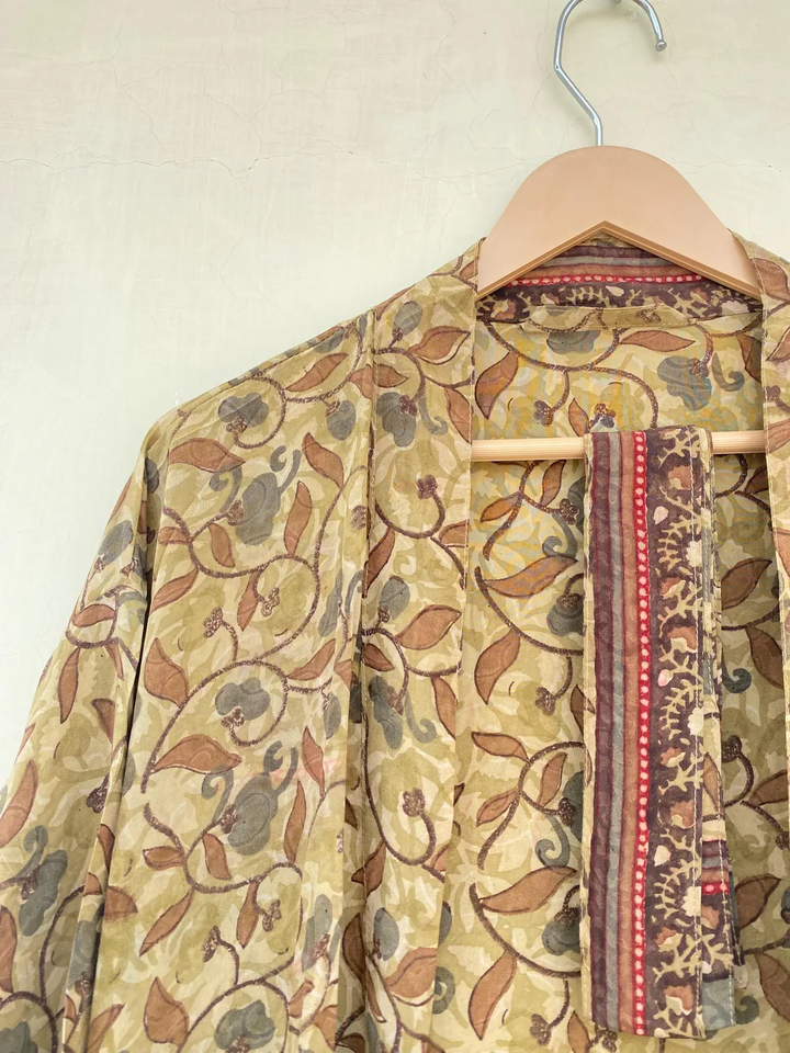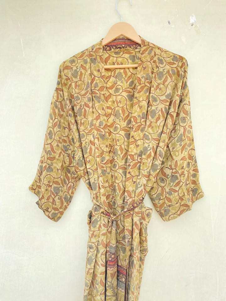Vintage Unisex Crepe Silk Kimono Recycled Robe Dressing Gown for Summer Autumn and Spring to Be Mom's Stylish Robe