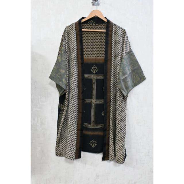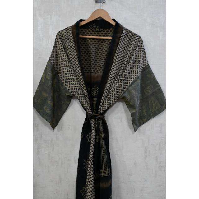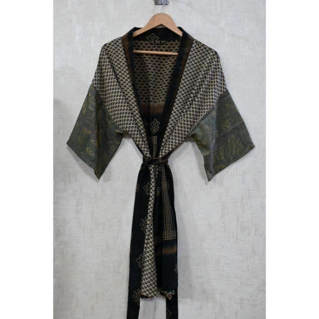 Robe Kimono Longue Vintage en Soie Patchwork, Peignoir Bohème Fait Main Imprimé Grande Taille Respirant pour l'Automne
