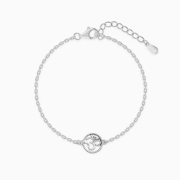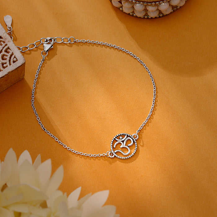 Bracelet Vintage en argent Om Rakhi Bracelet en silicone en laiton religieux ethnique à la mode avec diamant Quartz perle pierre pour cadeau de fête