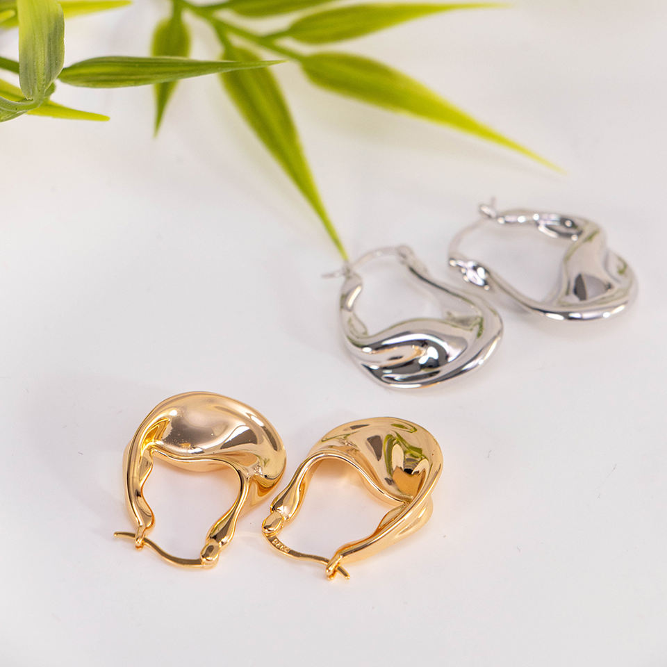 Boucles d'oreilles créoles vintage simples bohèmes en argent plaqué or pour femmes, tendance, irrégulières, torsadées, bijoux pour fêtes et mariages