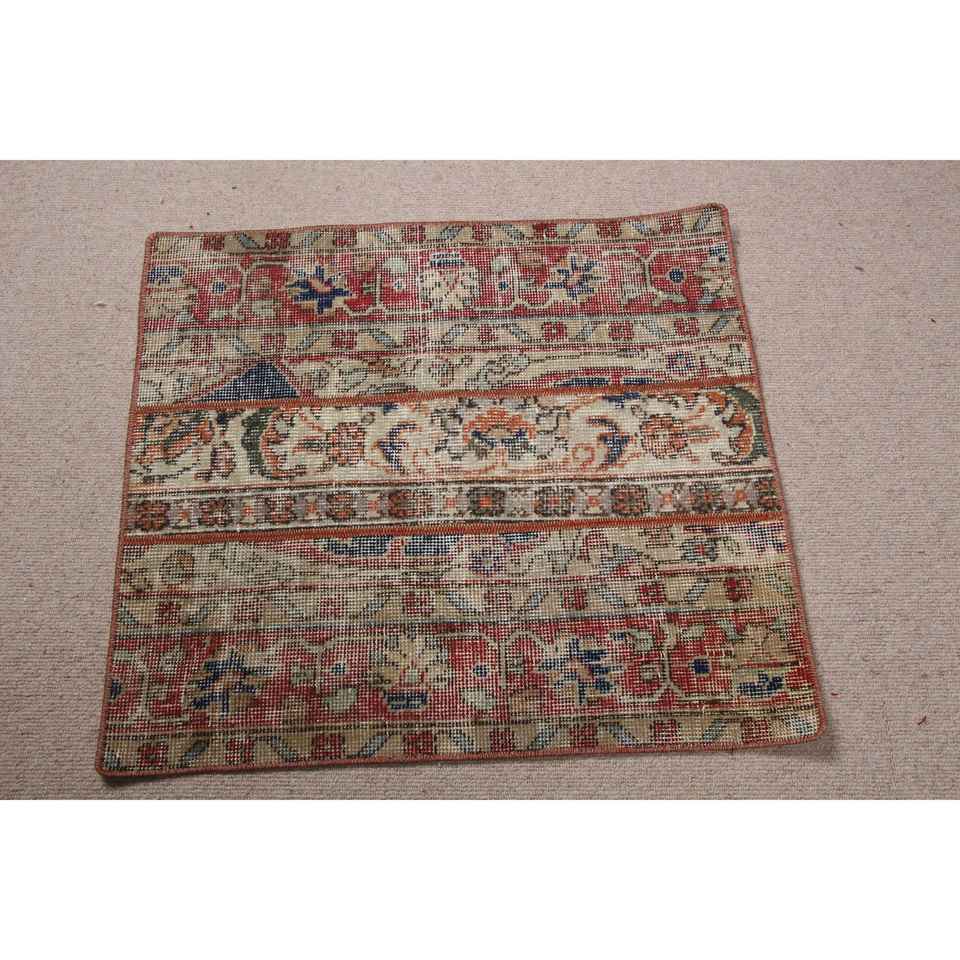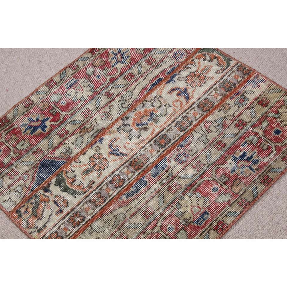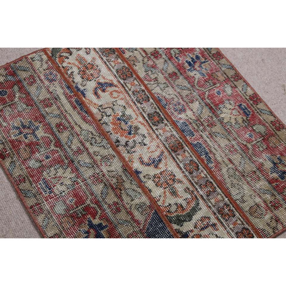 Petit tapis vintage 2,2x2,4 pieds, tapis turc en laine rouge Ikat