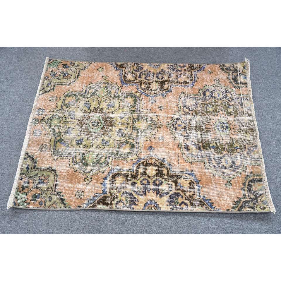 Petit tapis vintage, tapis turc de 2,9 x 3,7 pieds, tapis en laine marron