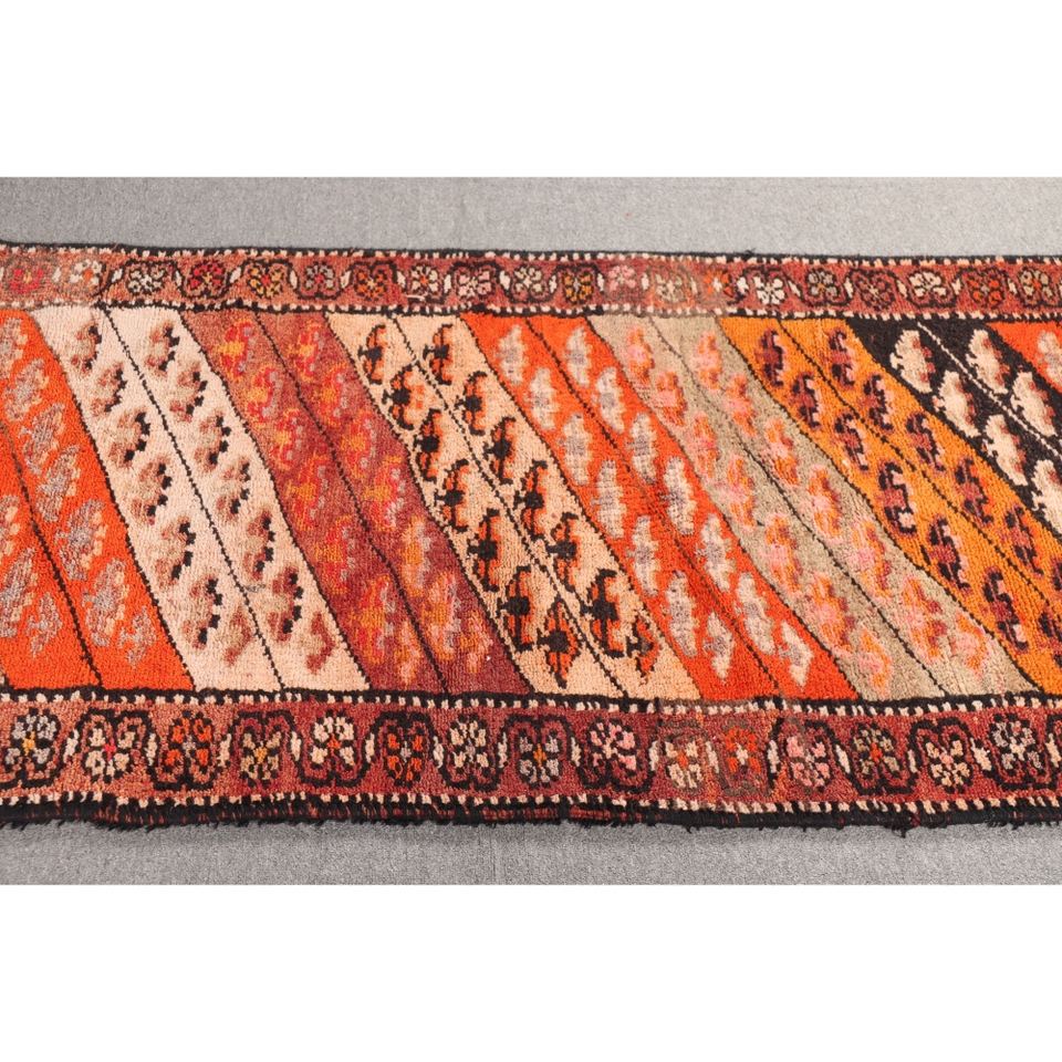 Petit tapis vintage 3x12,8 pi (90x390 cm), Herki marron géométrique avec éléments floraux, tapis turc