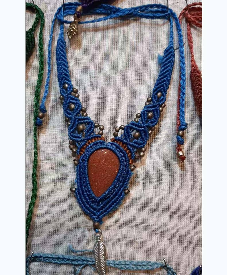Product Name:Rose Quartz Heart Multi-Color Cord Macrame Necklace