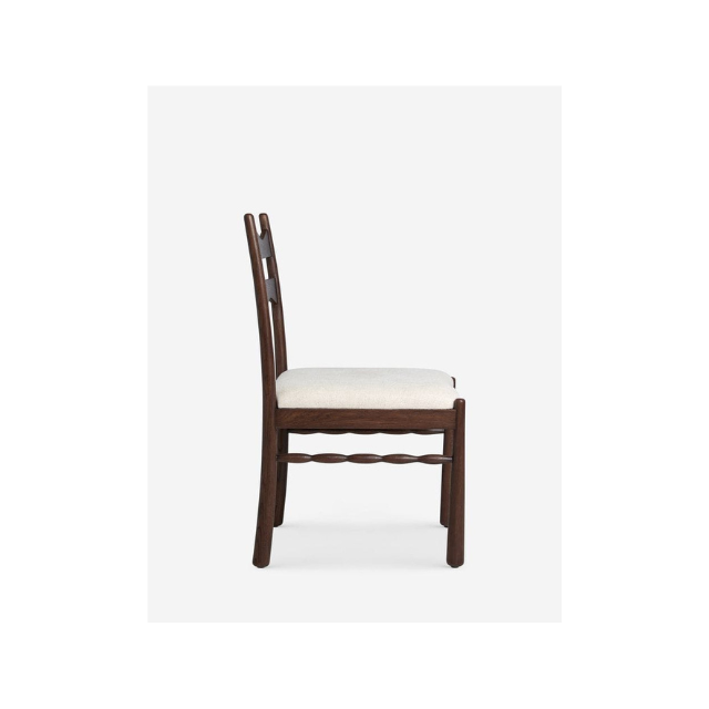 Vintage Solid Teak Wood Dining Chair with Upholstered Seat and Wavy Backrest Design
