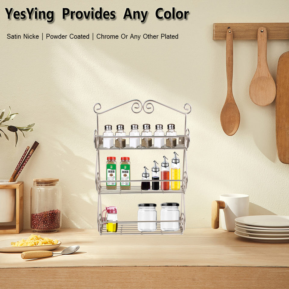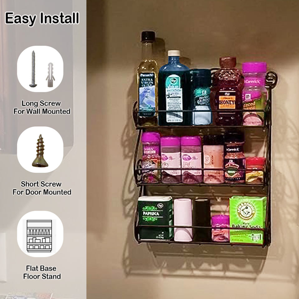 Étagère à épices vintage à 3 niveaux pour condiments, étagère à épices à 3 niveaux avec fil de roulement en acier noir pour la cuisine