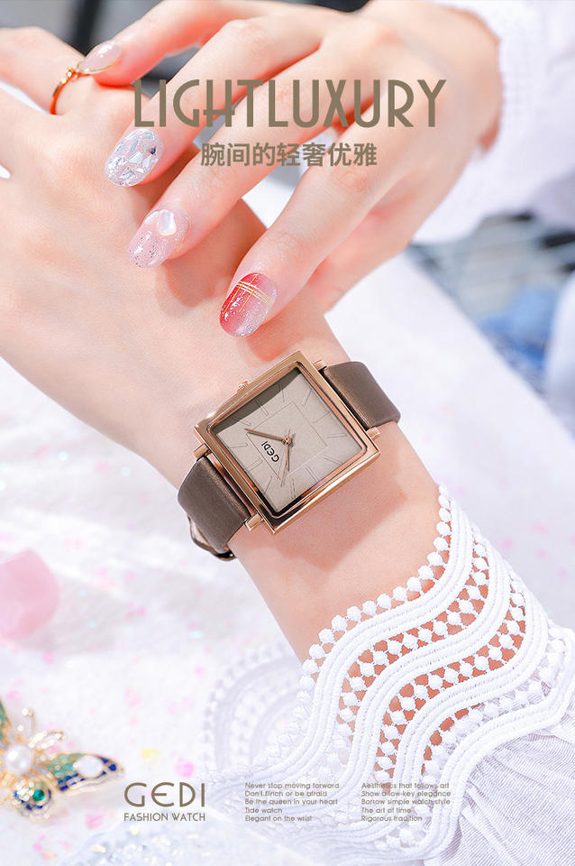 Vintage Square Women's Quartz Watch Large Dial Leather Strap Waterproof Wristwatch with Date