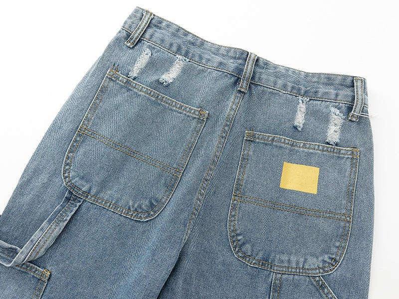 Vintage Stacked Pants 100% Cotton Wholesale Men Side Button Jeans Flared Denim Jeans Splitter Pain Patch Work Denim Jeans