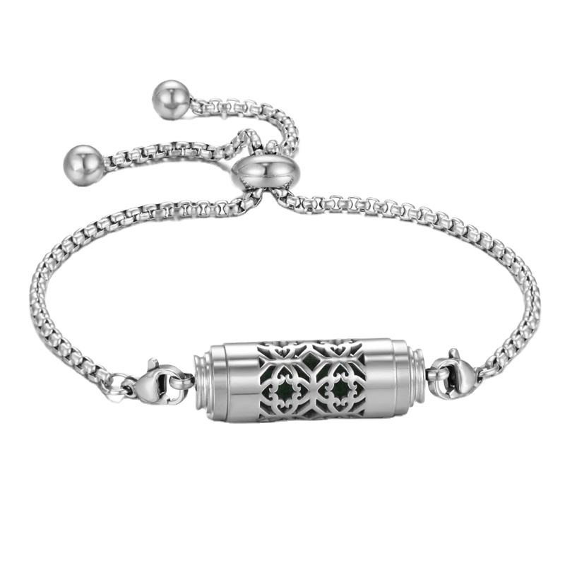 Bracelet chaîne à maillons en acier inoxydable vintage, motif cylindrique ondulé, diffuseur d'huiles essentielles