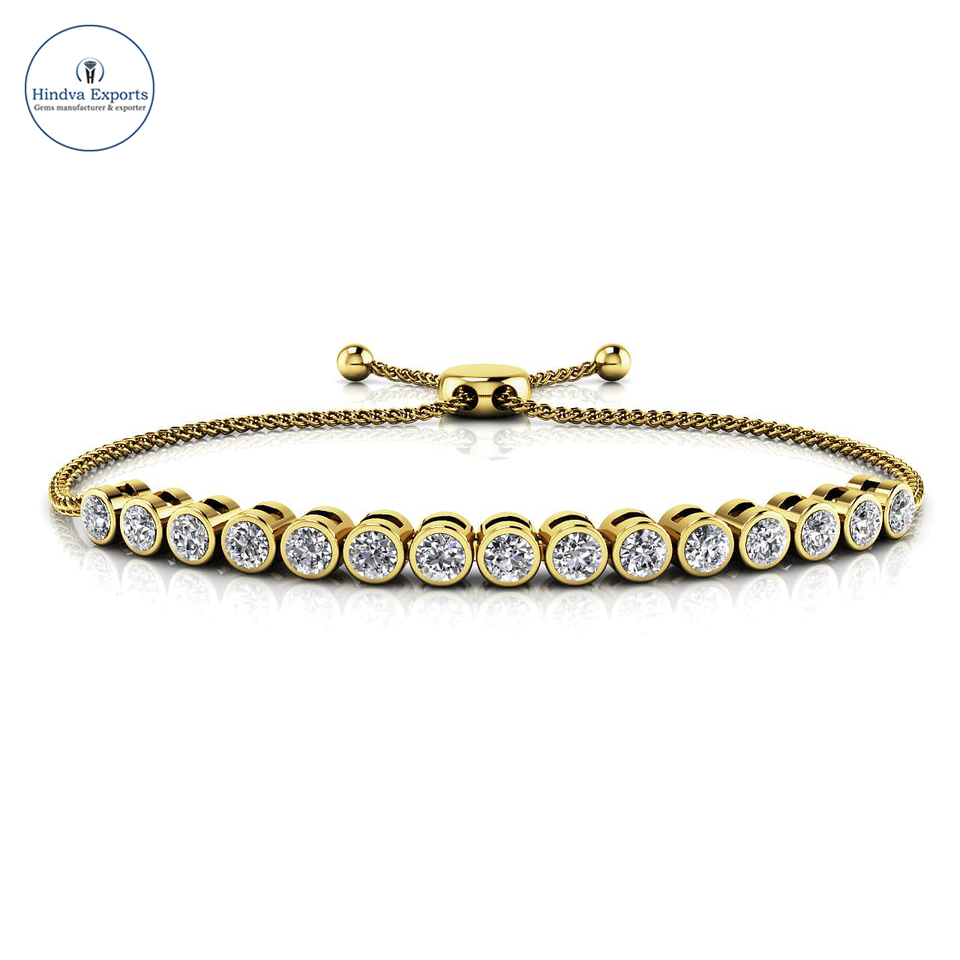 Bracelet tennis boule style vintage en or 14K avec diamant de laboratoire 0,69 ct taille brillant, certifié IGI, cadeau de fiançailles pour femme, serti griffe