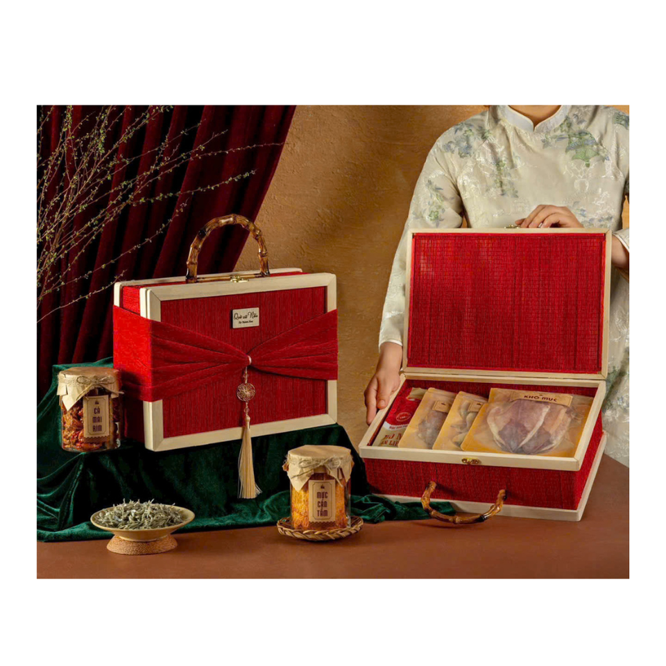 Vintage Style Bamboo Woven Basket with Lid Eco-Friendly Traditional Craft Gift Box for Tet Festival and Parties